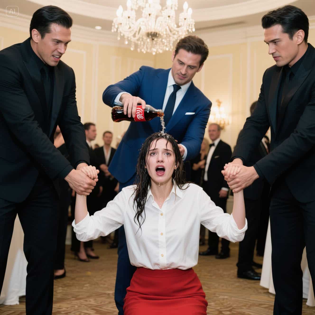 Tomó el vaso lleno de Coca-Cola, sus ojos brillando con una mezcla de ira y vergüenza. Y sin previo aviso, arrojó el líquido helado directamente sobre mi cabeza.
