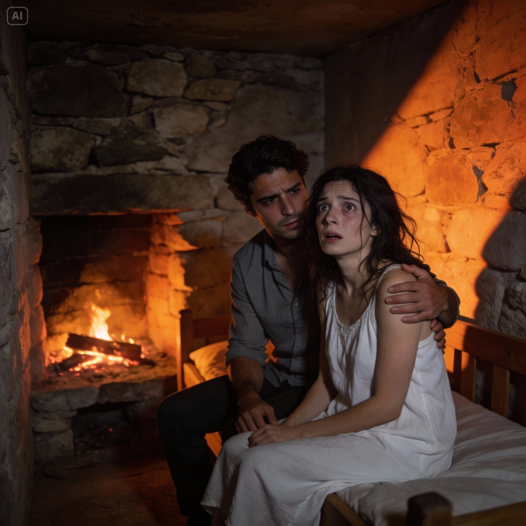La habitación era más pequeña de lo que esperaba, con ese encanto rústico de las casas antiguas de piedra y madera. Una sola cama dominaba el espacio, apenas lo suficientemente grande para una persona, y mucho menos para dos, con una colcha de retazos desgastada y almohadas que habían visto días mejores. Una chimenea ocupaba la mayor parte de una pared, apagada y fría. Un lavabo con una jofaina agrietada. Una ventana que traqueteaba en su marco mientras el viento aullaba fuera, lanzando nieve contra el cristal.