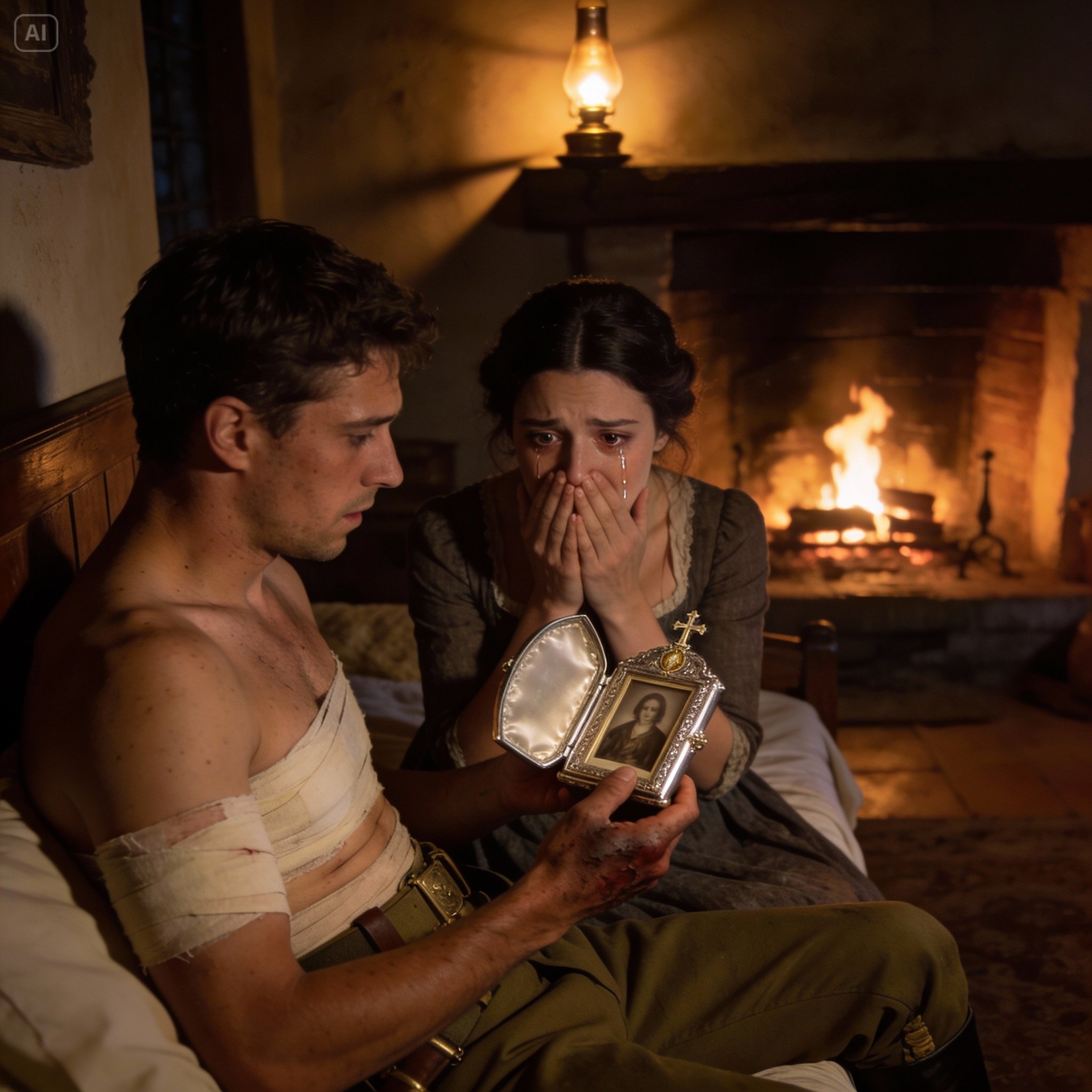Samuel se movió en el catre, con el rostro contraído por el dolor de la herida en su costado. Lentamente, con una mano temblorosa, buscó en el bolsillo interior de su abrigo destrozado. Sus dedos, manchados de tierra y sangre, tantearon torpes.