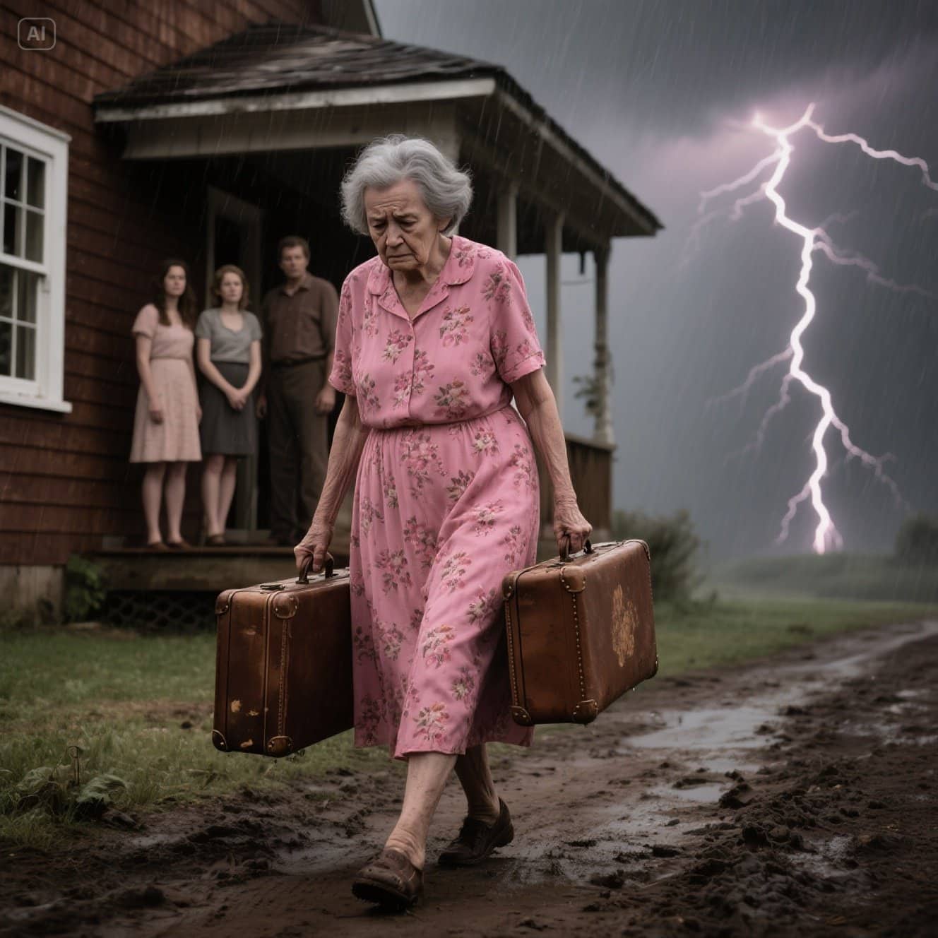 La ECHARON de su casa bajo la lluvia con 68 años. Sus 3 hijos no sabían que el hombre MISTERIOSO que la rescató… cambiaría sus vidas PARA SIEMPRE.