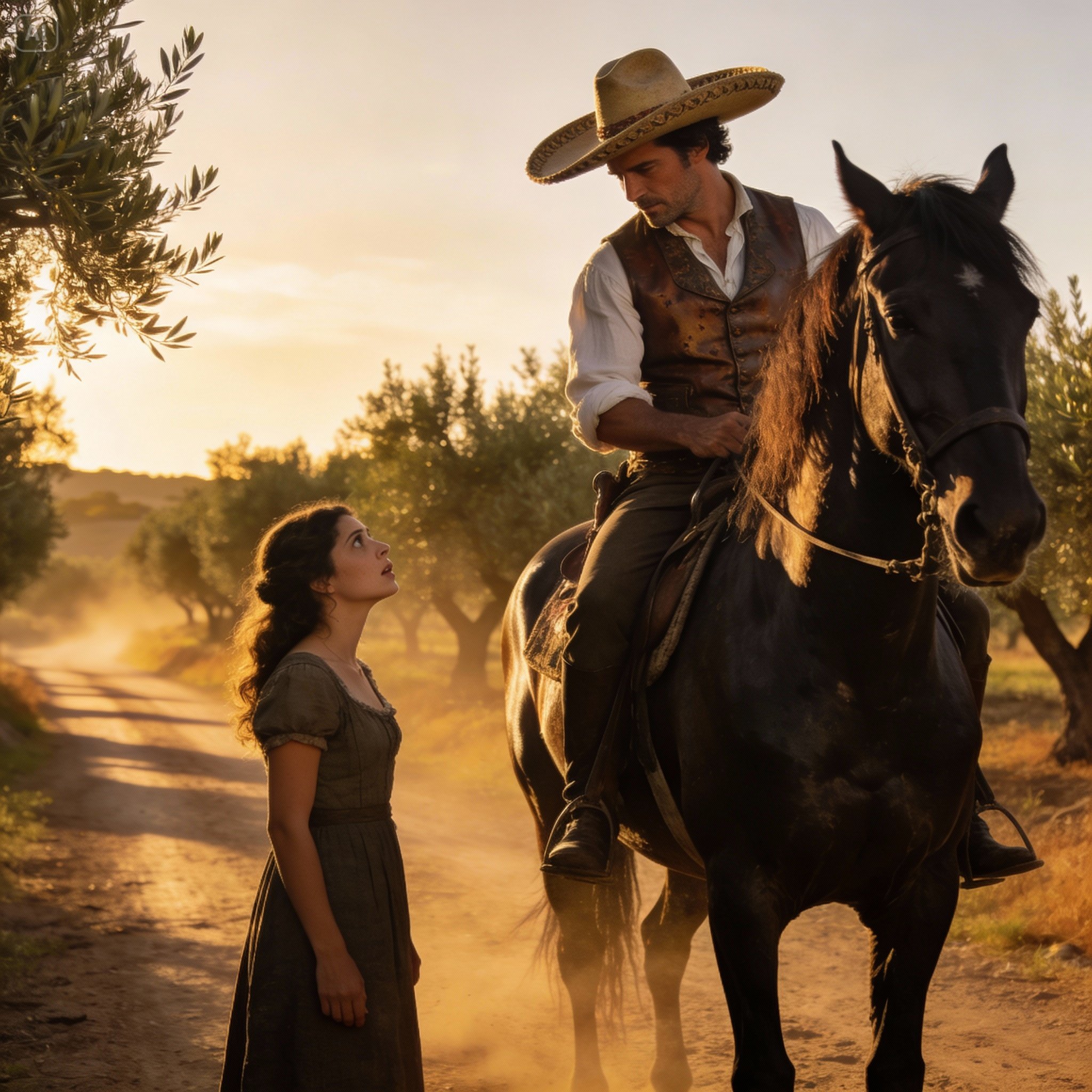 Lo que vio la dejó sin aliento. A lomos del animal estaba Don Rodrigo de Vivar, el dueño del Cortijo “El Roble”. Era el hombre más poderoso de la región, dueño de olivares que se extendían hasta donde alcanzaba la vista y ganaderías de toros bravos. Un hombre de cuarenta y cinco años, de facciones nobles, con algunas canas plateando sus sienes y una mirada profunda y serena que imponía respeto con solo parpadear.