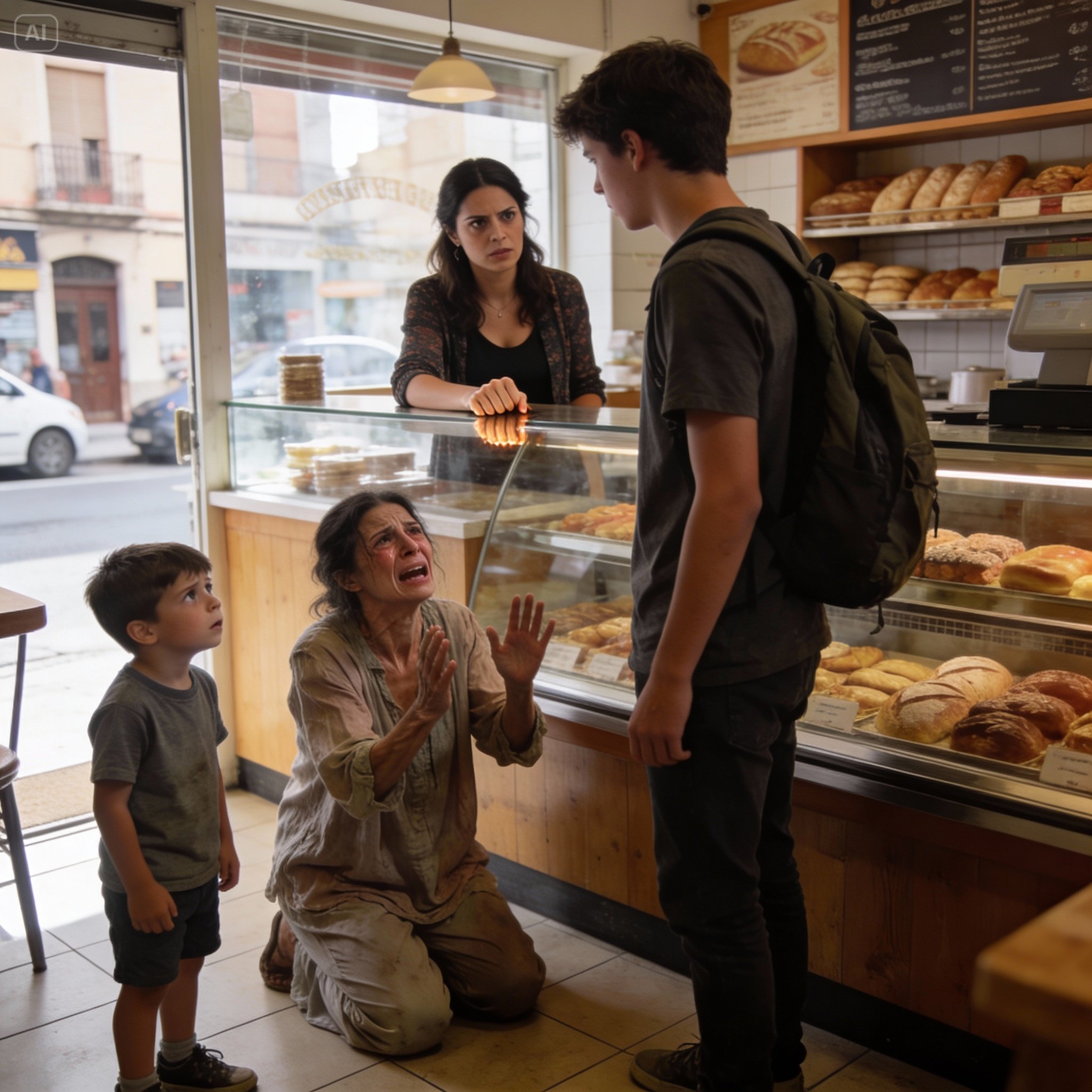 En la pastelería, la hora de la siesta había vaciado el local. El aire estaba cargado de una tensión eléctrica. Yo estaba detrás del mostrador, con el cuchillo de cortar el pan apretado en mi mano derecha bajo la barra. Frente a mí estaba Clara.