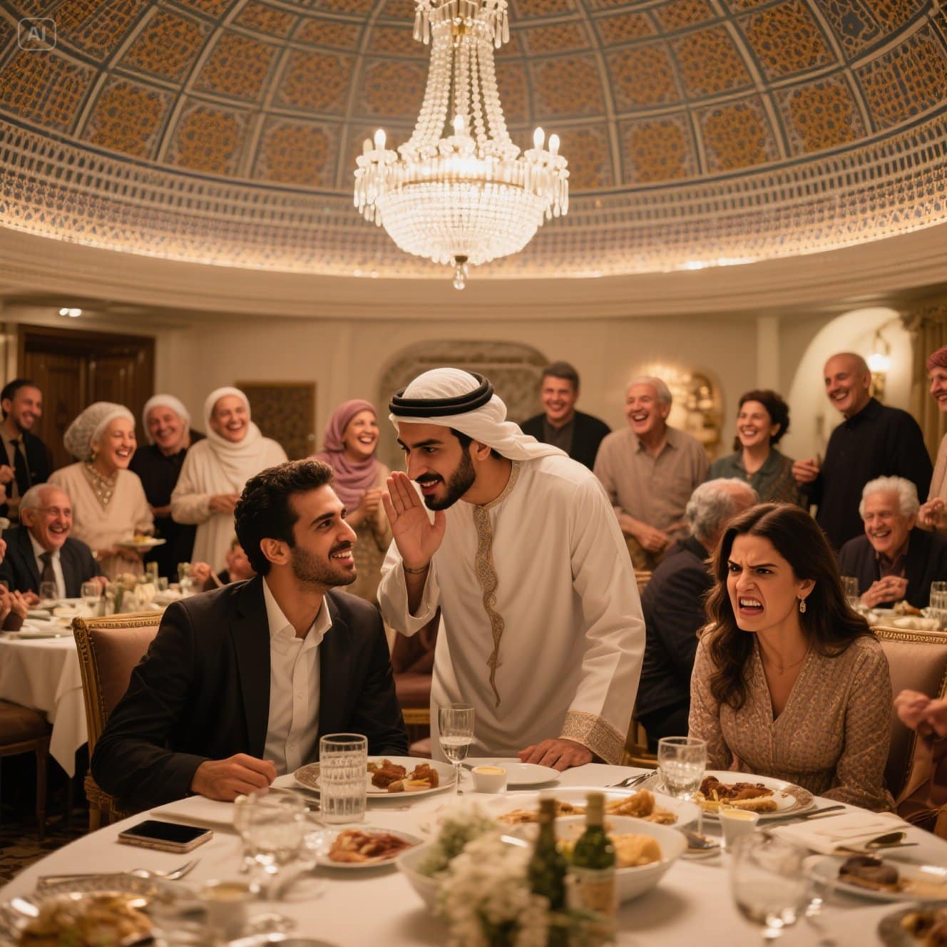 La lámpara de cristal sobre nosotros proyectaba sombras danzantes sobre el mantel de lino blanco mientras Tariq se inclinaba hacia su hermano menor, Omar, hablando en un árabe rápido y fluido.