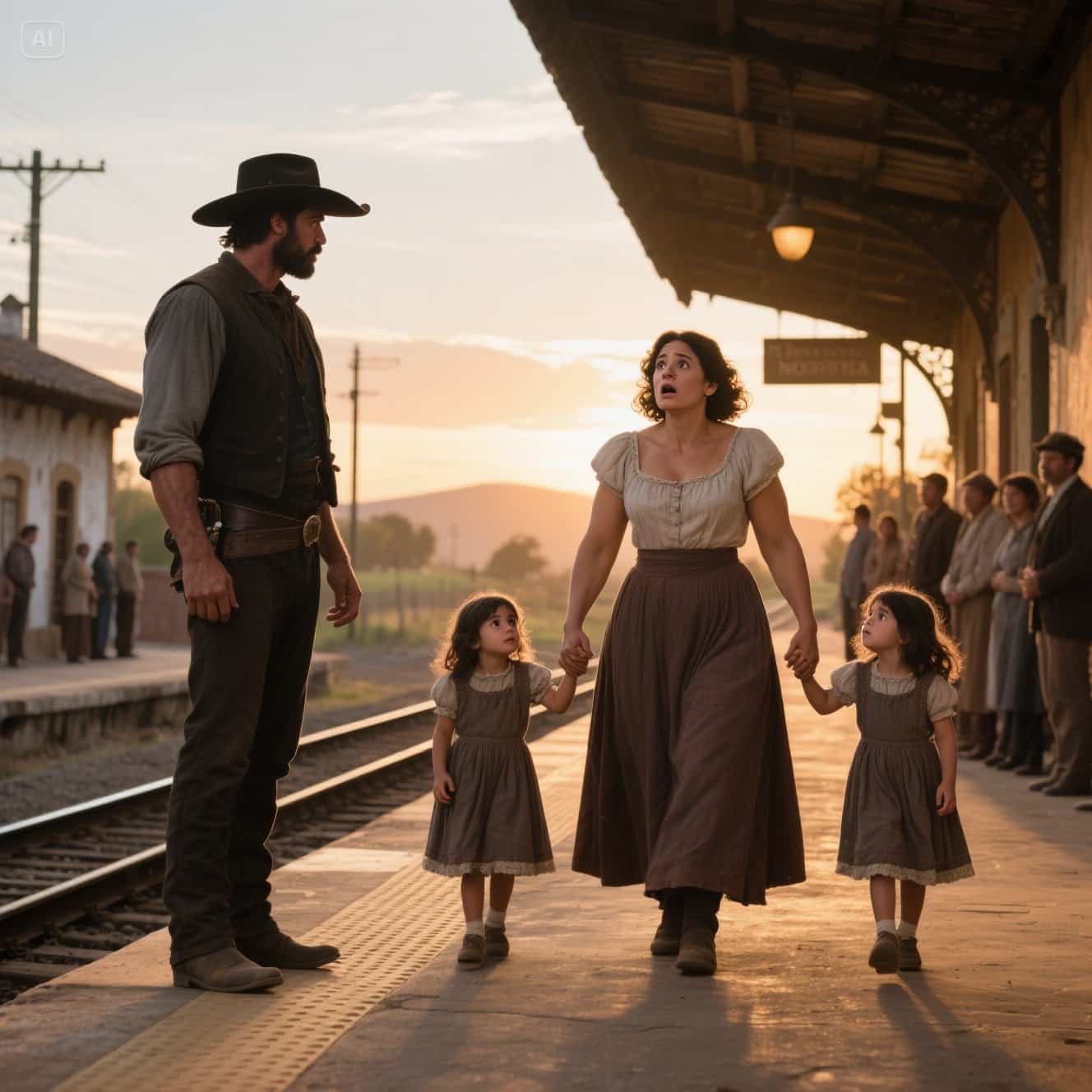 El hombre era de hombros anchos, curtido por el sol y el viento. Su rostro, sombreado por el ala de su sombrero, era rudo, marcado por la vida. Sus botas golpearon el andén de madera con pasos pesados y deliberados.