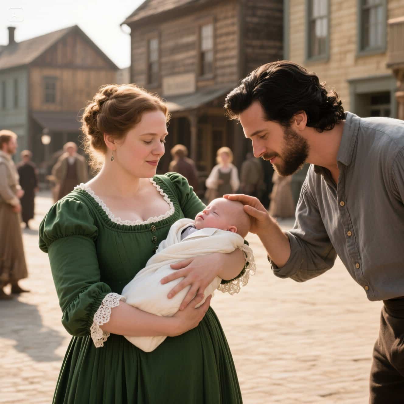La multitud se apartó como las aguas del Mar Rojo. Vi unas botas polvorientas tropezar en la plaza. Luego al hombre. Hombros anchos, barba de varios días, ojos salvajes por un agotamiento que iba más allá del cansancio. Su camisa de vaquero estaba manchada de algo oscuro. Sus manos, grandes y callosas, temblaban mientras sostenía un pequeño bulto envuelto en una manta sucia.