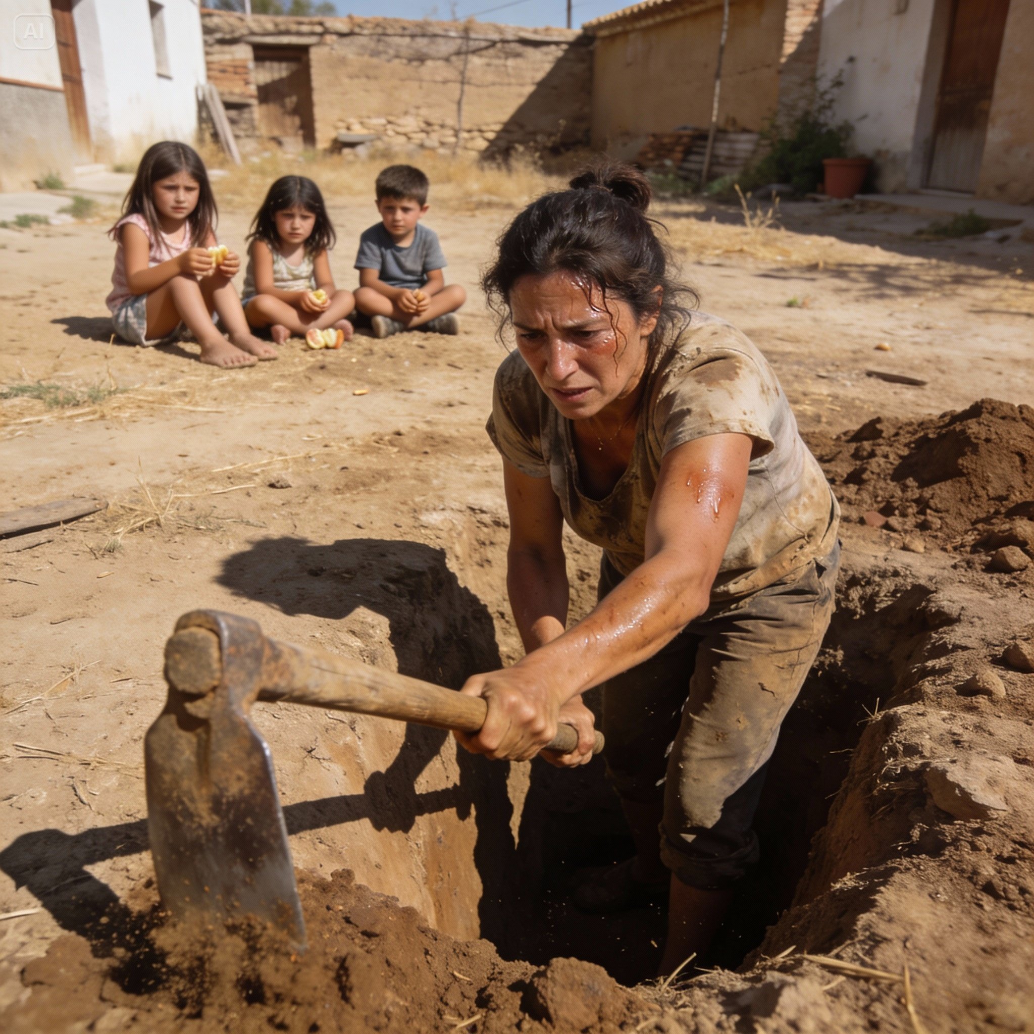 Comencé a cavar. Los primeros movimientos fueron torpes. Mis músculos, acostumbrados a fregar ropa pero no a esto, protestaron de inmediato. Levanté nubes de polvo que se me metían en la nariz y los ojos. Pero seguí. Cavar, levantar, tirar. Cavar, levantar, tirar.