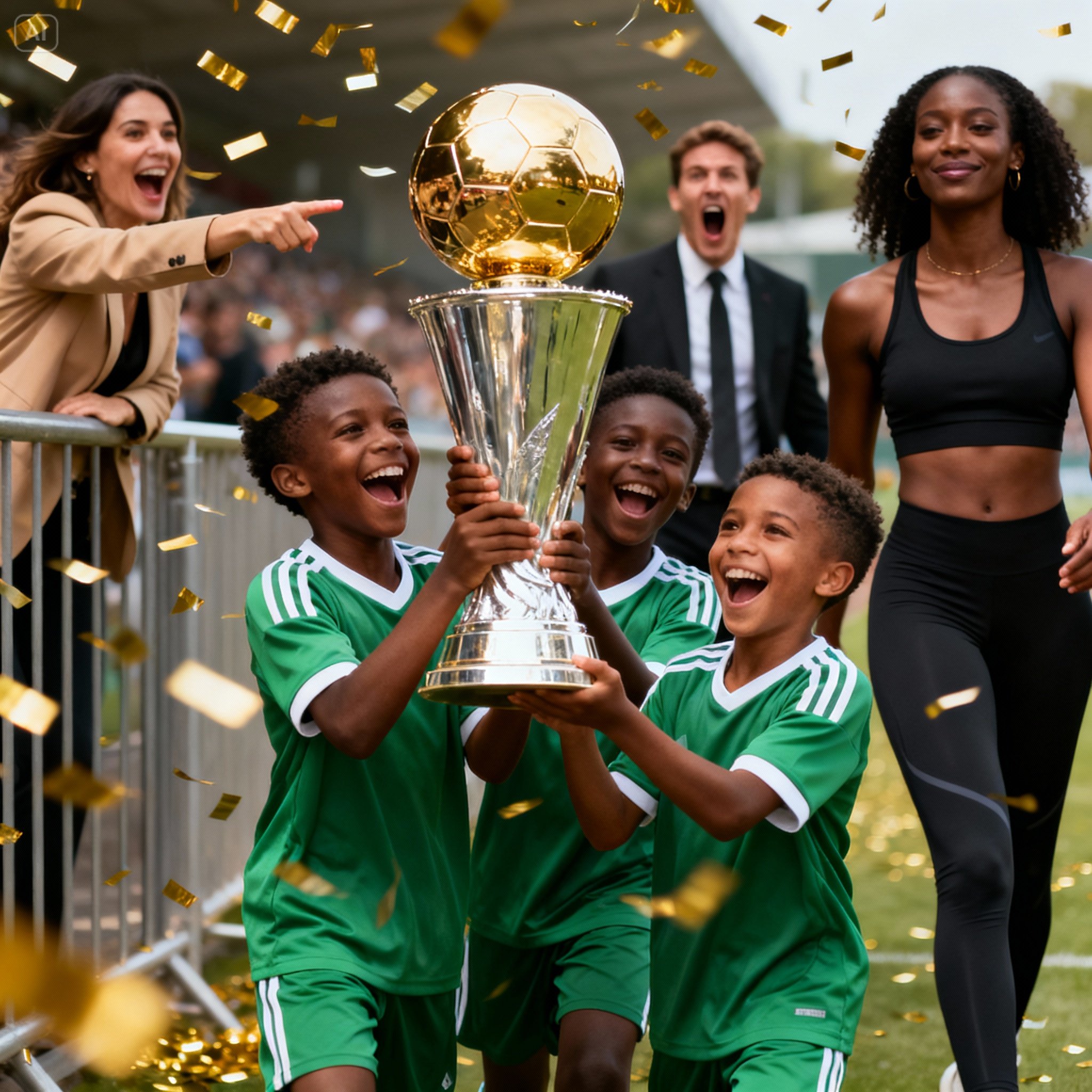 Trois joueurs en maillots orange vif coururent vers le centre du terrain. Ryan se leva, tenant le trophée massif. Il souriait pour les caméras. Il n’avait aucune idée de qui étaient ces enfants Johnson.