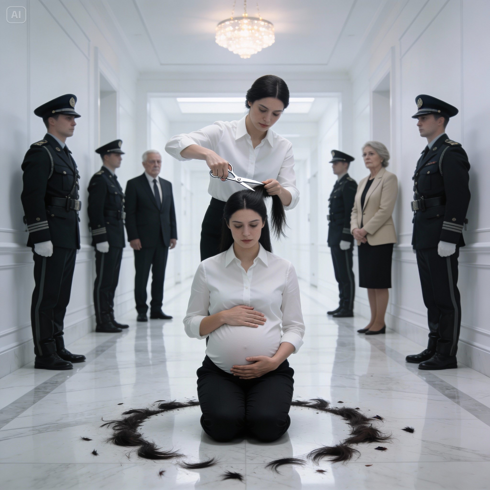 De l’acier chromé qui captait la lumière comme une lame. Le souffle d’Élise se coupa. « À genoux », dit doucement Véronique. Les gardes regardaient, silencieux, immobiles, complices de leur immobilité. Élise s’agenouilla lentement, maladroitement, son ventre rendant la descente difficile. Le marbre froid mordait à travers son uniforme fin. Sa main resta sur son ventre.