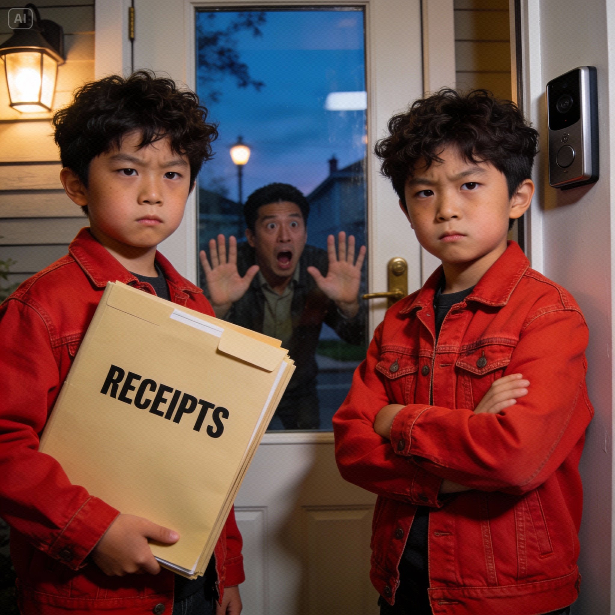 À 15h30, sa sonnette retentit et la caméra montra deux tornades à sac à dos rebondissant avec impatience sur son seuil. « Laisse-nous entrer ! On a apporté nos devoirs et maman nous a préparé un goûter même si elle est encore super en colère ! » cria Kai à la caméra.