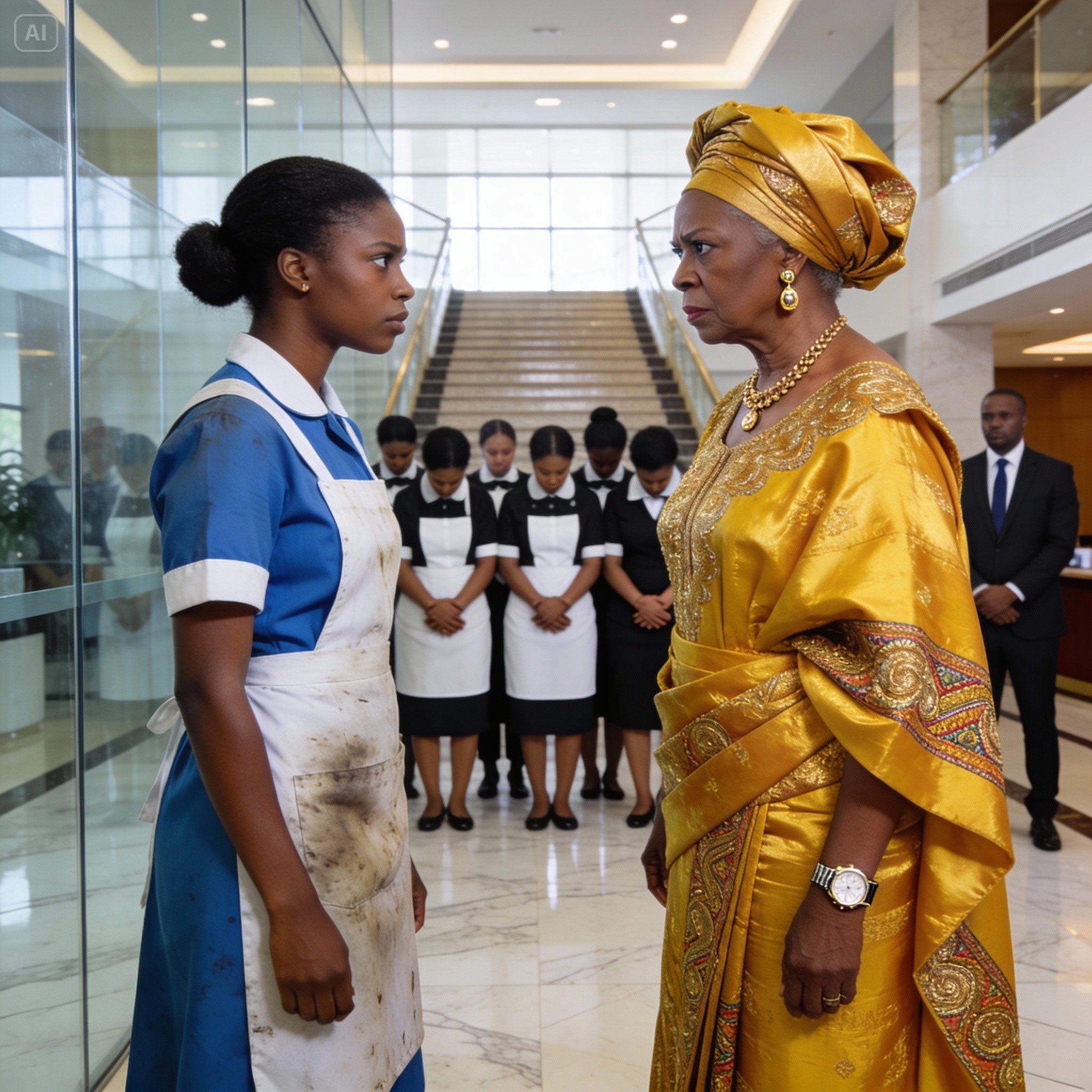 Le lendemain matin, Maman Hélène fit un choix qu’elle avait reporté pendant des années. Elle alla voir Maître Tunde Akinnuoye. Le bureau de Tunde surplombait la ville, modeste comparé aux tours du pouvoir des entreprises, mais bien ancré. Il écouta sans interruption tandis que Maman Hélène parlait, sa voix stable malgré le poids de la mémoire derrière elle. « Je travaille là-bas depuis douze ans », dit-elle. « J’ai vu des gens disparaître. J’ai vu des salaires s’évanouir. Je suis restée silencieuse parce que j’avais besoin de manger. » Tunde joignit les mains. « Et maintenant ? » « Et maintenant », dit Maman Hélène, « j’en ai assez de survivre au détriment de mon âme. » Elle fit glisser le nom de Noémie sur le bureau. « Cette fille s’est levée. Pas pour elle-même, pour une autre femme de chambre. Ce n’est pas courant. » Tunde hocha lentement la tête. « Je suis déjà impliqué », dit-il. Maman Hélène leva brusquement les yeux. « Comment ? » « Le PDG m’a demandé d’examiner certaines affaires internes », répondit doucement Tunde. L’espoir vacilla, fragile mais réel.