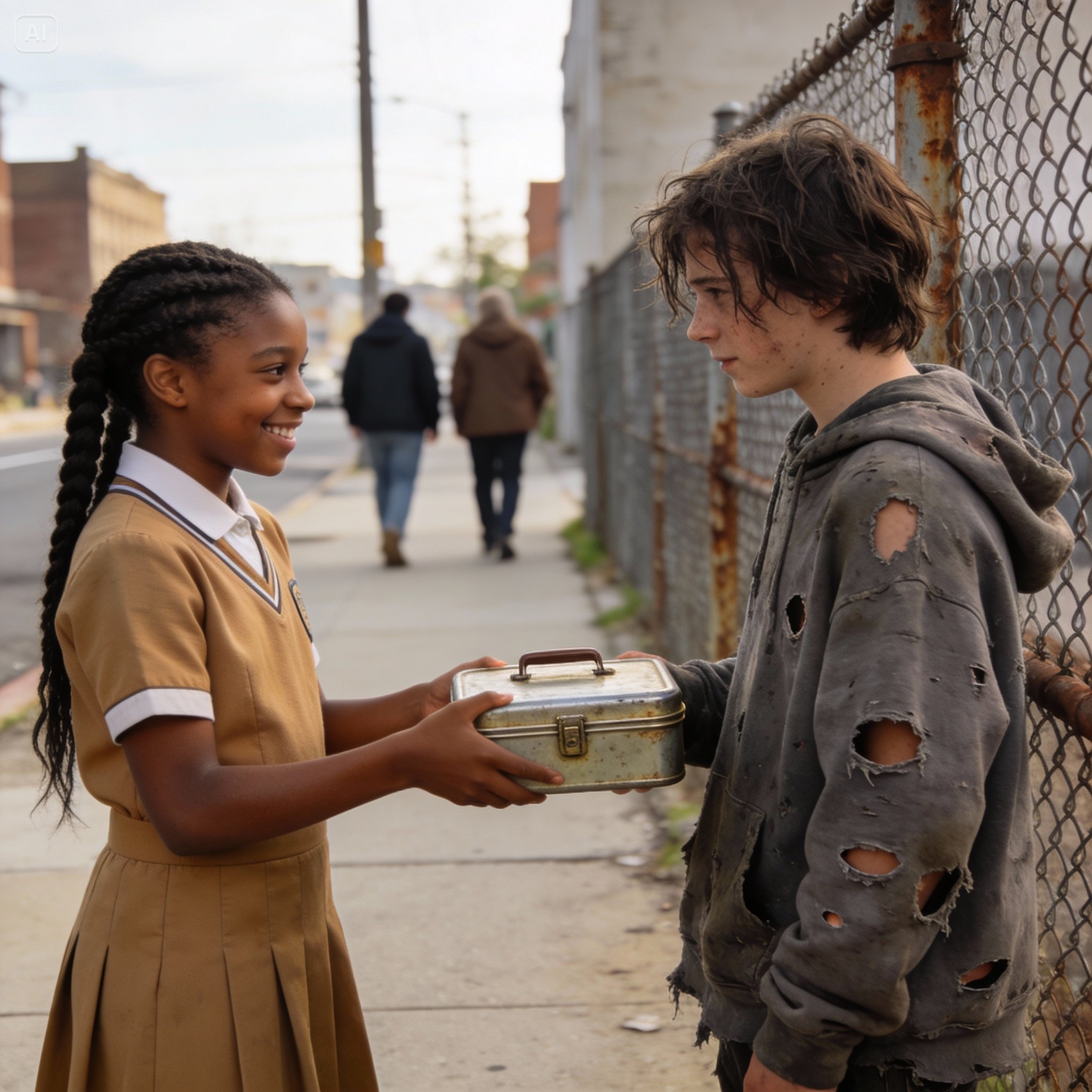 Amina, neuf ans, la peau noire et les tresses perlées, aperçut le garçon blanc et affamé à travers le grillage de l’école. Sa famille n’avait presque rien, mais elle lui donna quand même son déjeuner. Chaque jour, pendant six mois. Personne ne le lui avait demandé. Personne ne l’avait remerciée. Elle l’avait simplement fait. Quand il est parti, Julien lui a fait une promesse folle.