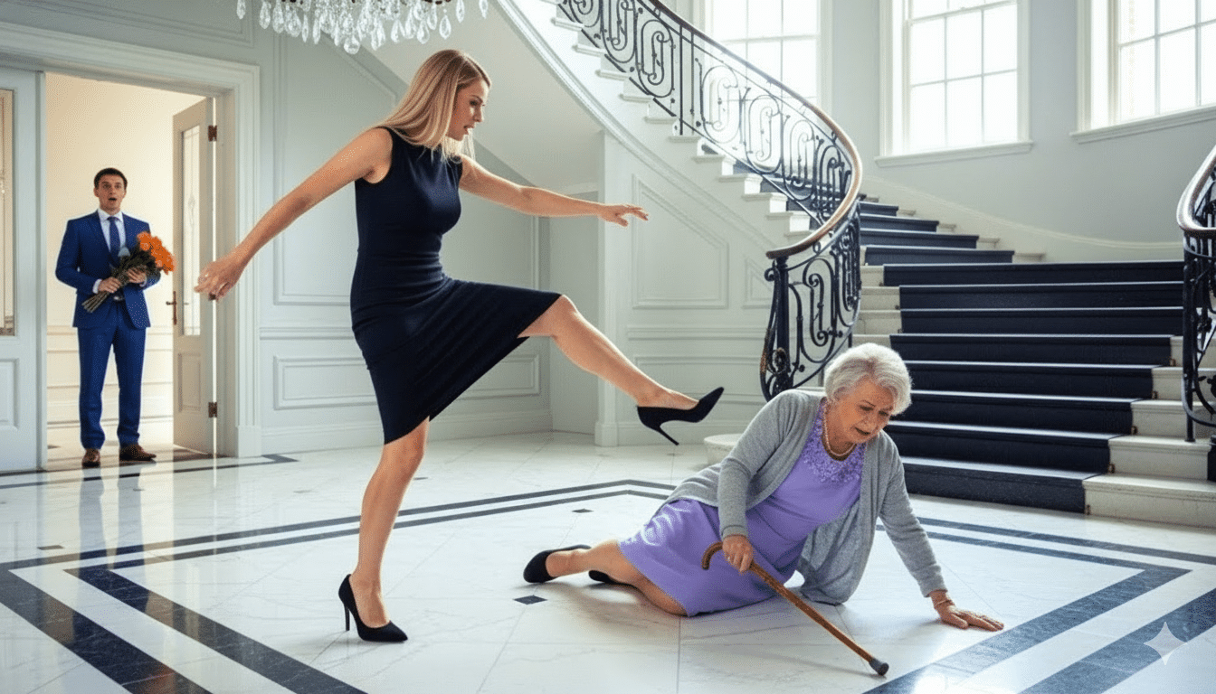 C’était une surprise pour sa mère, Catherine, un petit geste pour égayer sa journée. Mais juste après le hall d’entrée, là où la lumière se reflétait parfaitement sur le marbre poli, le temps s’arrêta net. Sa fiancée, Anne Gauthier, élégante, si posée, la femme qu’il s’était vue auprès de lui pour la vie, était figée en plein mouvement, son escarpin à talon aiguille levé, tremblant de fureur.
