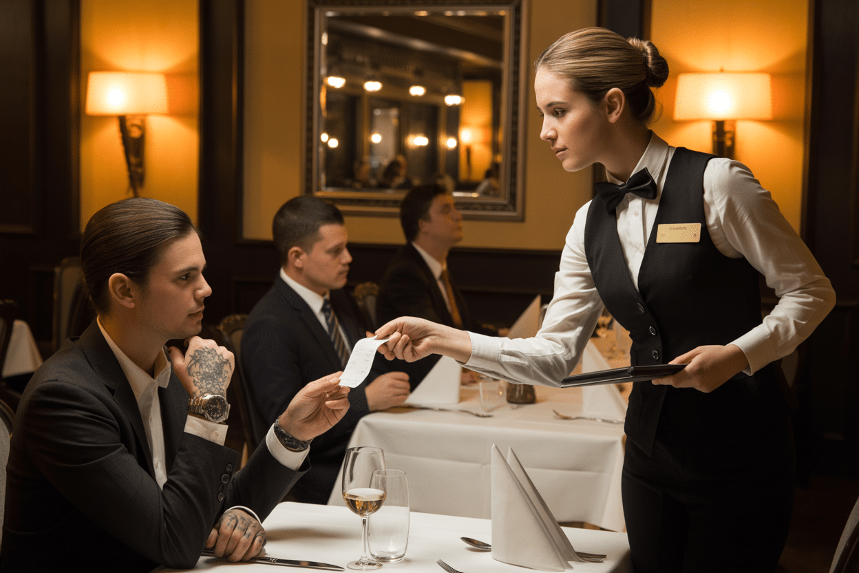 O risco da caneta no papel não deveria ter soado mais alto que o jazz suave filtrado pelo Terrazza Alto. No entanto, Lúcia sentiu cada traço como um trovão ao circular três avisos vitais na conta do homem que todos ali sabiam ser um chefe. Suas mãos tremiam imperceptivelmente. Anos servindo mesas mascaravam o terror que rastejava sob sua pele.