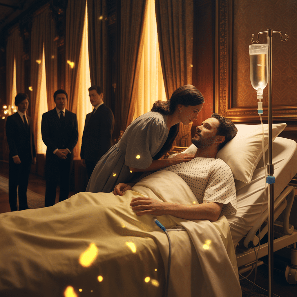 Quando o quarto se esvaziou brevemente, enquanto o médico chamava uma reunião familiar no corredor, ela moveu-se rapidamente para a cabeceira dele e segurou sua mão.