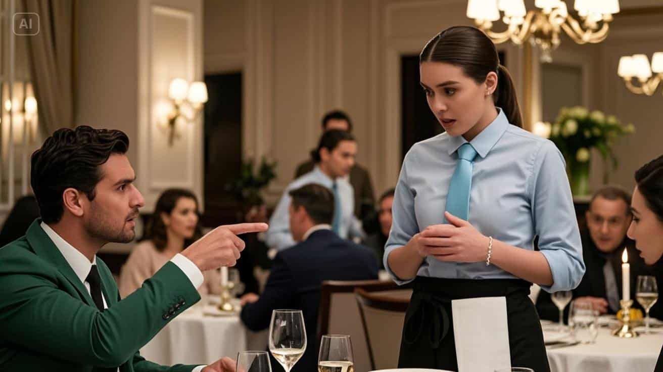 A garçonete, Emília, congelou, seus olhos se arregalando. Ela olhou para o pulso e depois de volta para ele. Seu olhar era calmo, firme e cheio de uma coragem silenciosa.