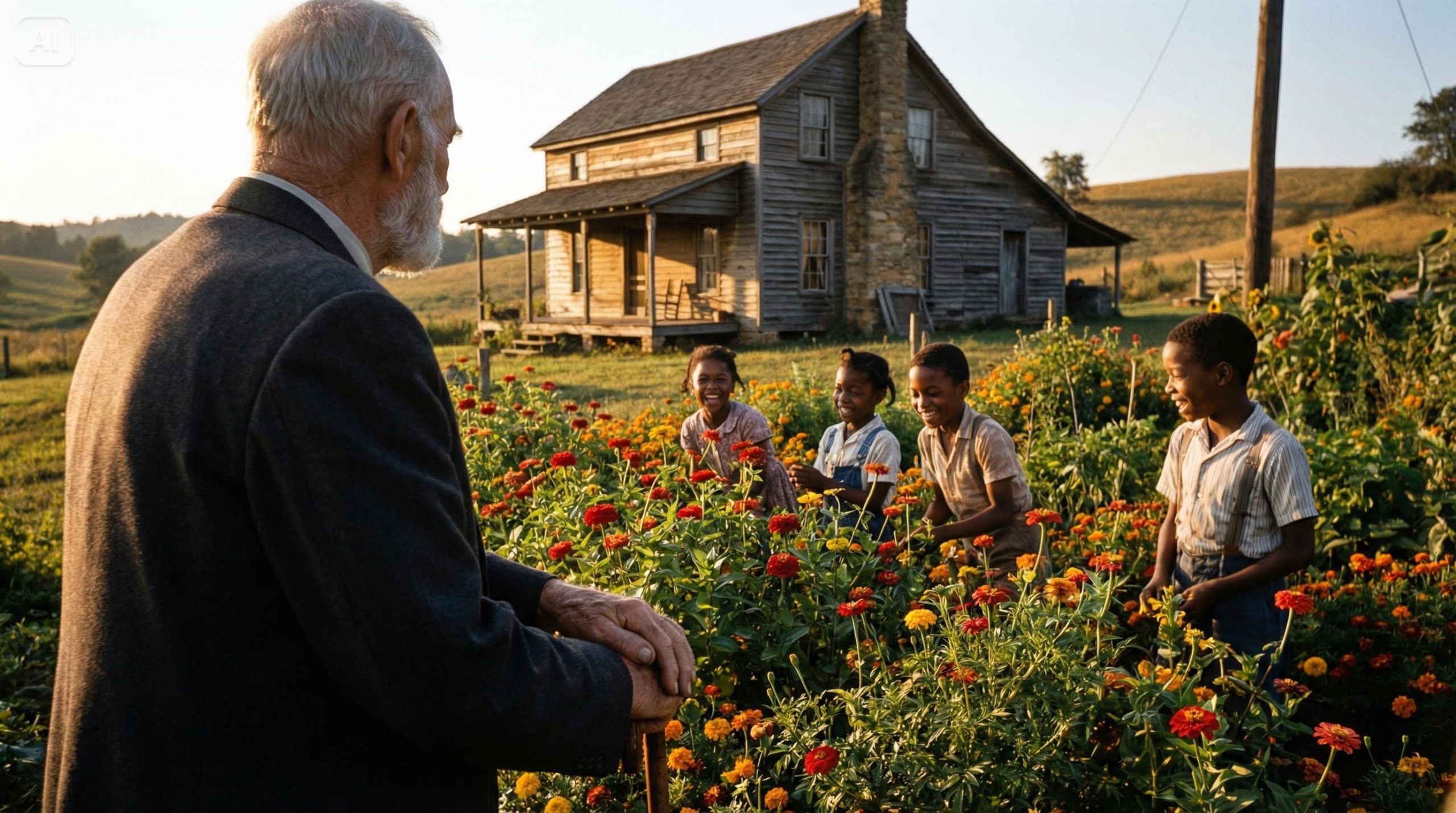 Então, ele os viu. Três crianças, paradas perto da fundação da casa, as mãos sujas de terra, os rostos curiosos. E ao redor delas, rosas. Rosas de um vermelho vivo, impossivelmente vibrantes, crescendo em meio a toda aquela decadência.