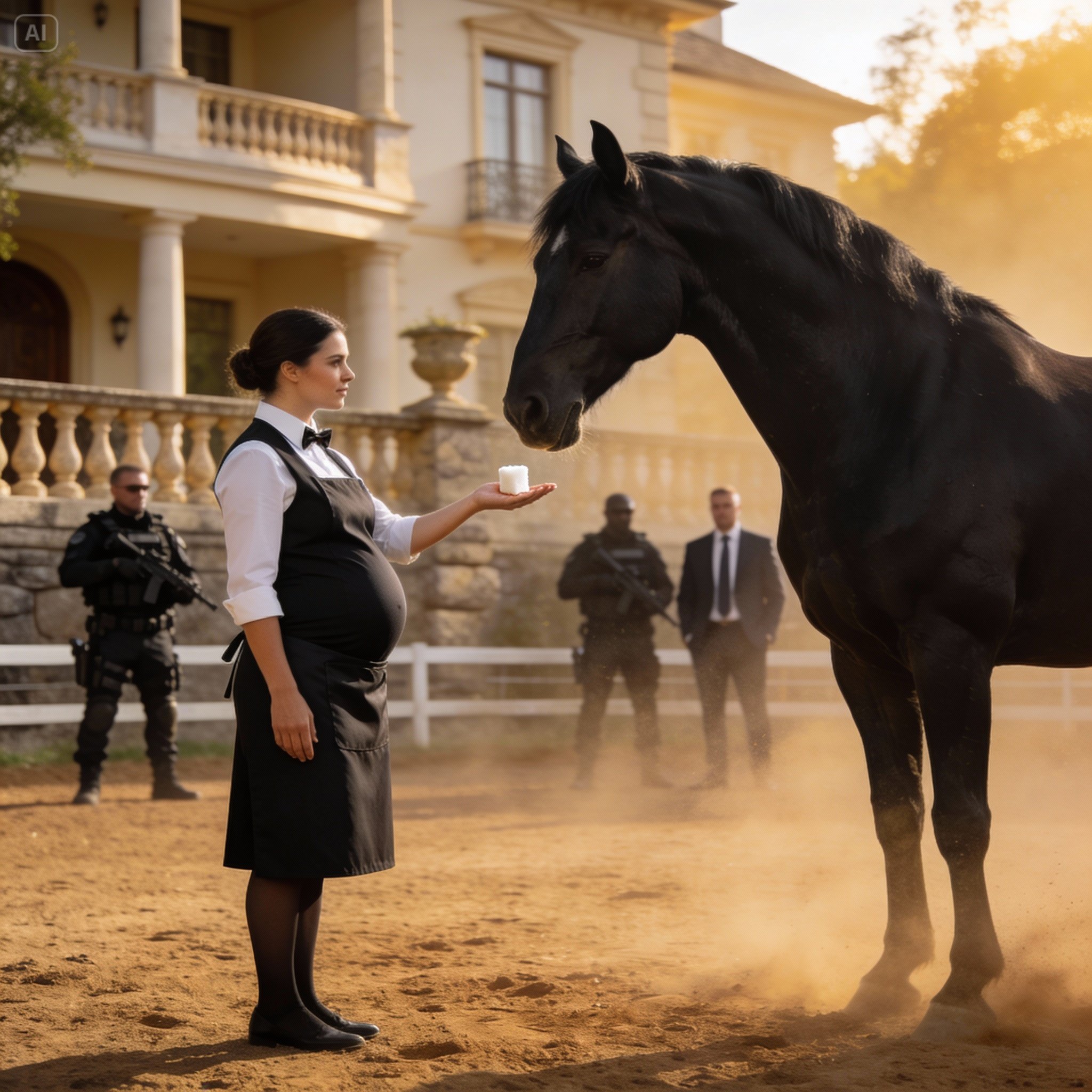 Doze guardas não conseguiram controlar o garanhão negro do chefe da máfia — a empregada grávida o alimentou na palma da mão.