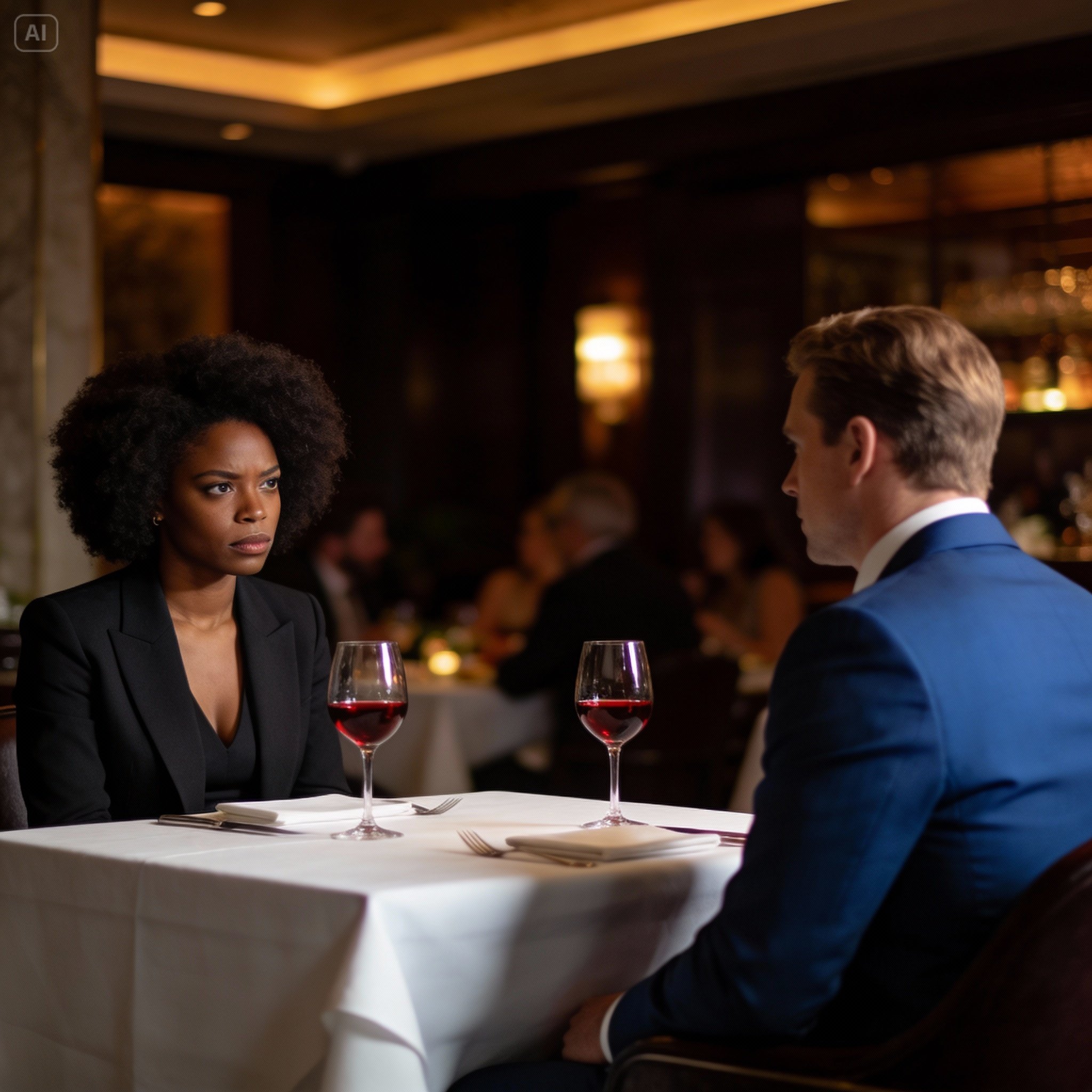 Eu pousei meu garfo com um cuidado deliberado. A prata fez um som suave, quase fúnebre, contra a porcelana branca. Peguei meu copo de água, meus movimentos lentos e medidos, em nítido contraste com as batidas frenéticas do meu peito. Tomei um gole lento e encontrei seu olhar. Eu não disse nada.