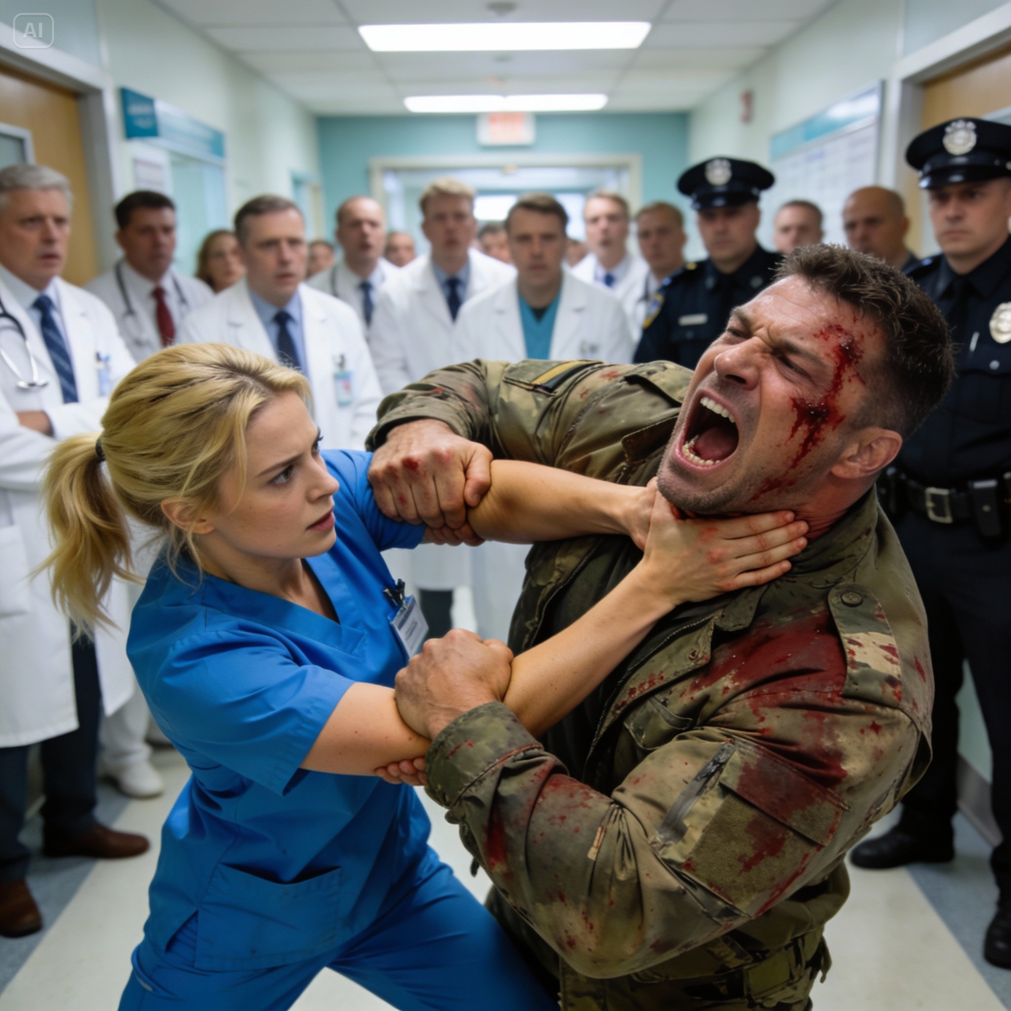 O gigante de 2,13 metros invadiu o pronto-socorro — e a enfermeira novata o imobilizou instantaneamente.