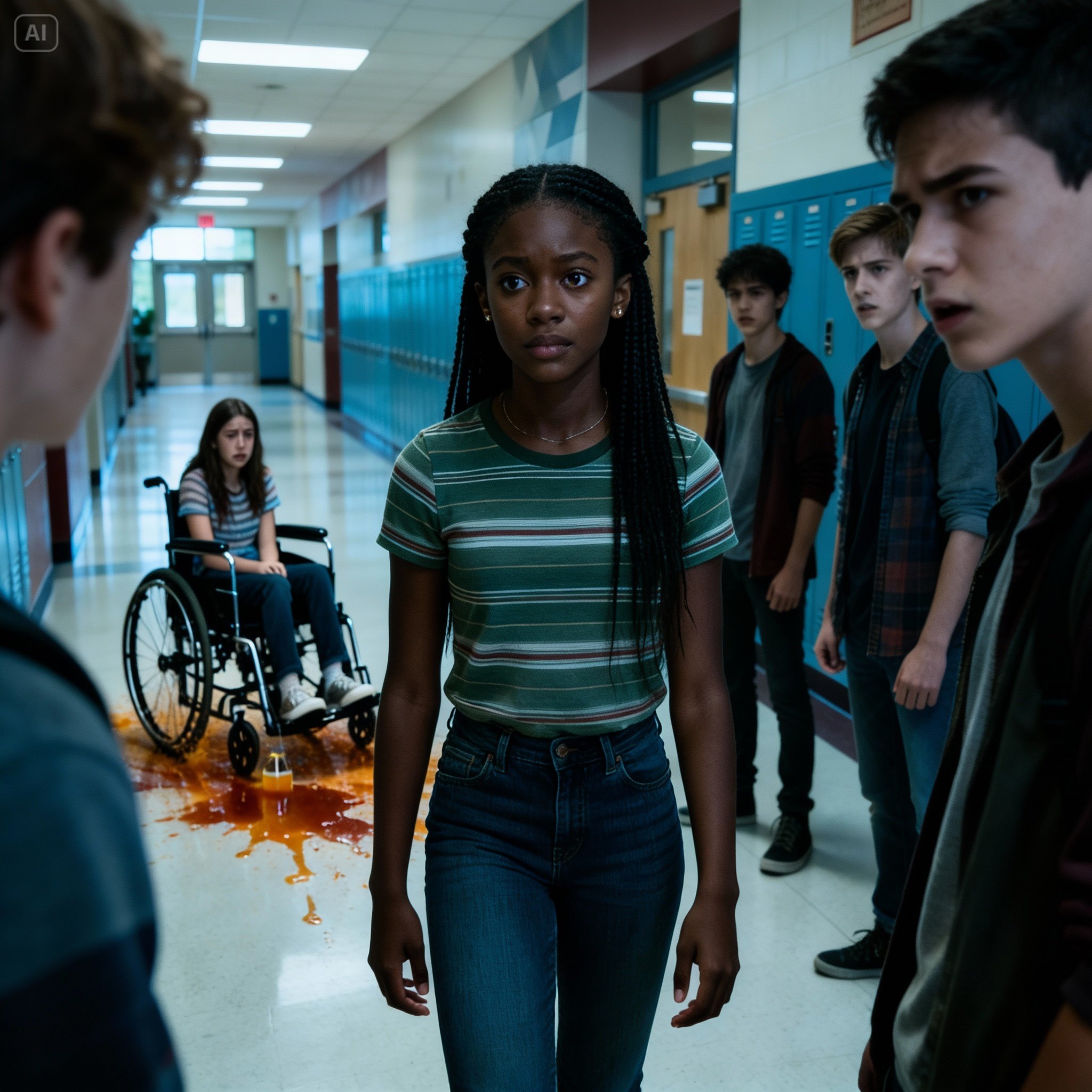 “Valentões jogam suco em uma menina em cadeira de rodas — 20 minutos depois, uma garota negra os faz se arrepender.”