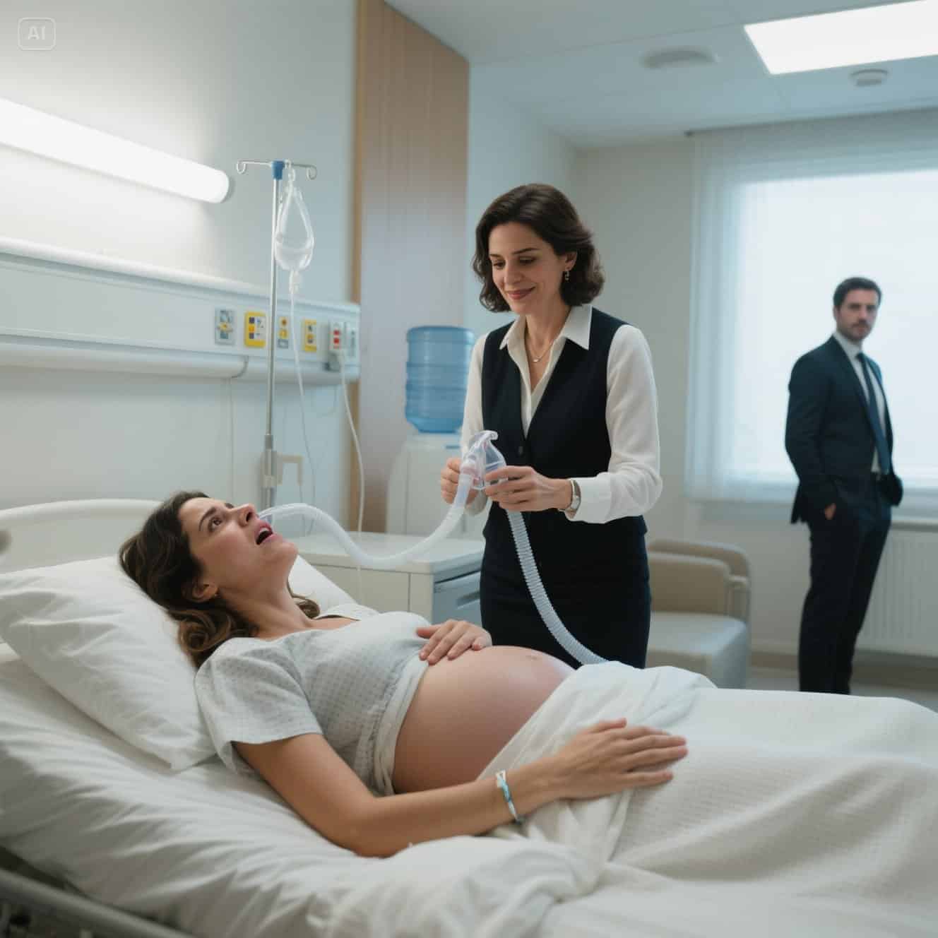 Aba agiu rapidamente, fingindo ajudar, cobrindo o tubo com a mão. “É só uma contração”, disse ela calmamente. “Ela está em pânico. Acontece.” Sua voz era baixa, confiante, perfeitamente calculada. Ela havia ensaiado.