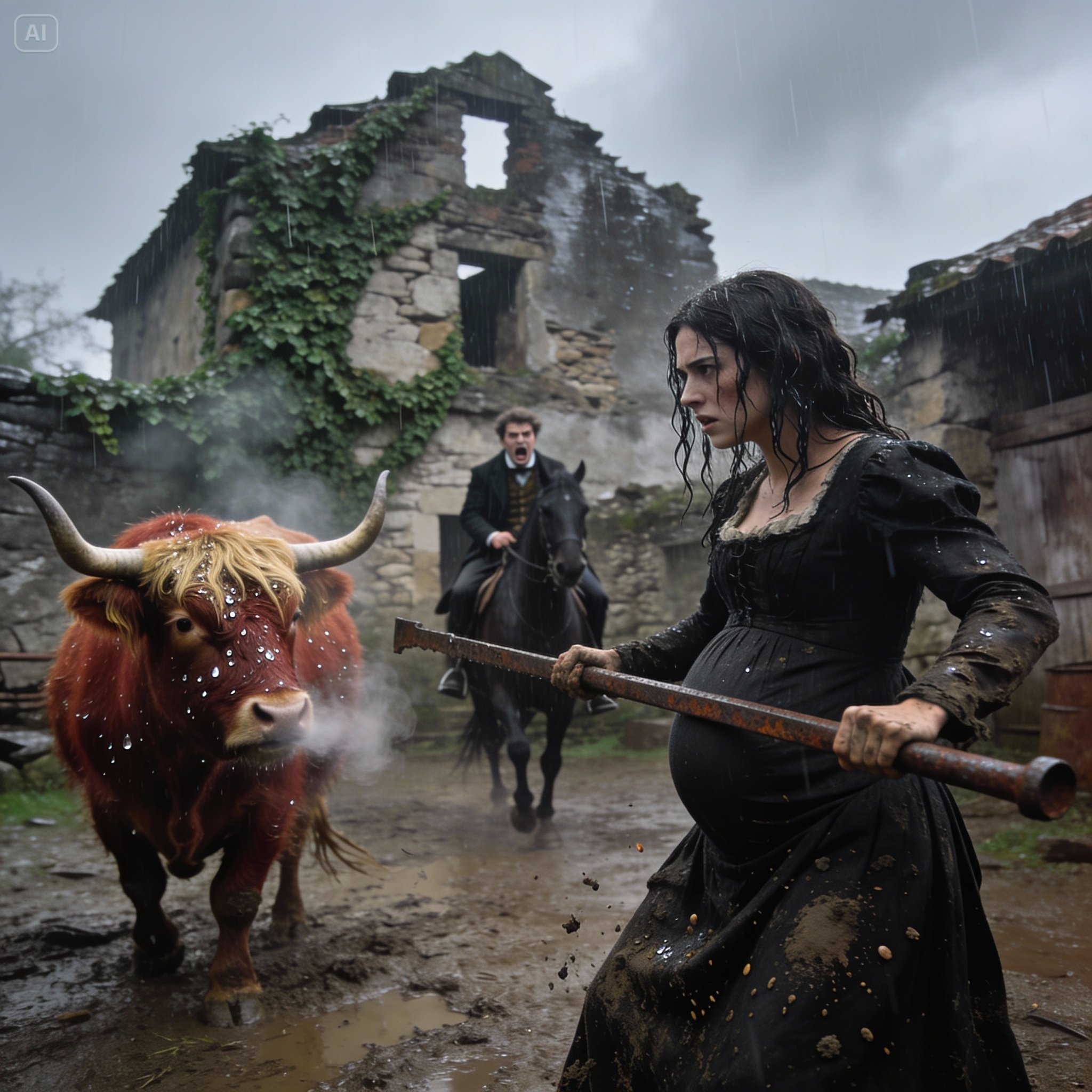 Caminhei sob a garoa, contornando a casa até chegar aos currais dos fundos. A lama manchava a barra do meu vestido e encharcava minhas botas gastas. O cheiro de esterco e feno molhado impregnava o ar.