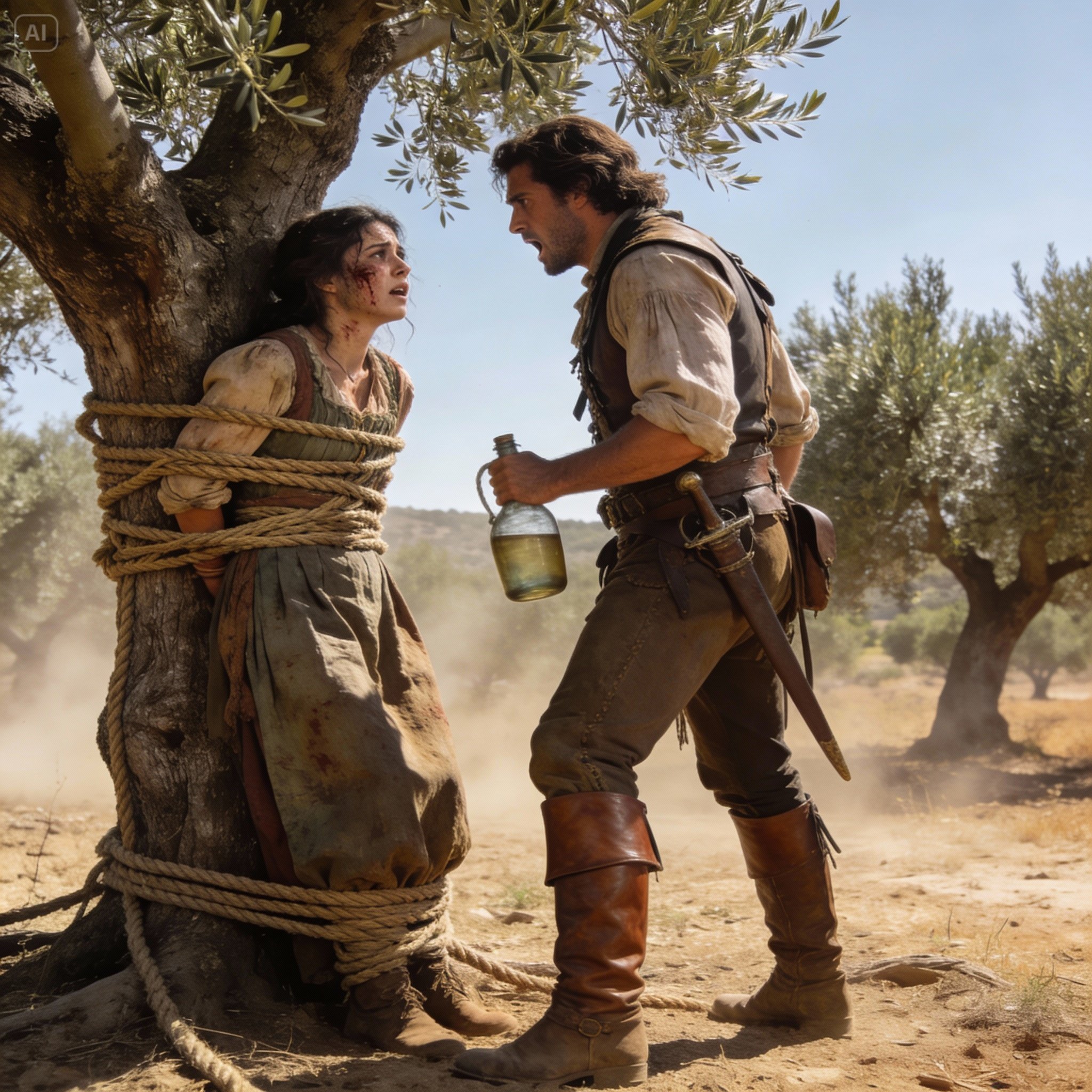 A casca da velha oliveira havia se cravado nas minhas costas como uma segunda espinha dorsal, feita de dor e farpas. Eu estava ali havia três dias. Três dias observando o sol atravessar o céu espanhol, indiferente à minha sede, indiferente aos meus pulsos que eu já não sentia, indiferente à vida que escapava pela minha boca seca.