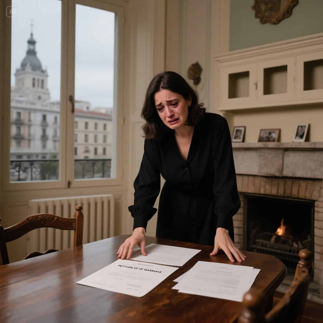 Quatro horas. Eu estivera parada junto ao seu túmulo no Cemitério de Almudena, sentindo meu mundo desmoronar sob o céu cinzento de Madri, e durante todo esse tempo esses papéis estiveram me esperando aqui. Minhas mãos tremiam violentamente enquanto eu pegava o documento. A data do pedido era três dias atrás. Três dias atrás, enquanto eu escolhia o caixão do meu pai e escrevia seu obituário com o coração partido, enquanto eu soluçava na capela do hospital depois que os médicos me disseram que ele não tinha muito tempo de vida, Tomás havia entrado com o pedido de divórcio.