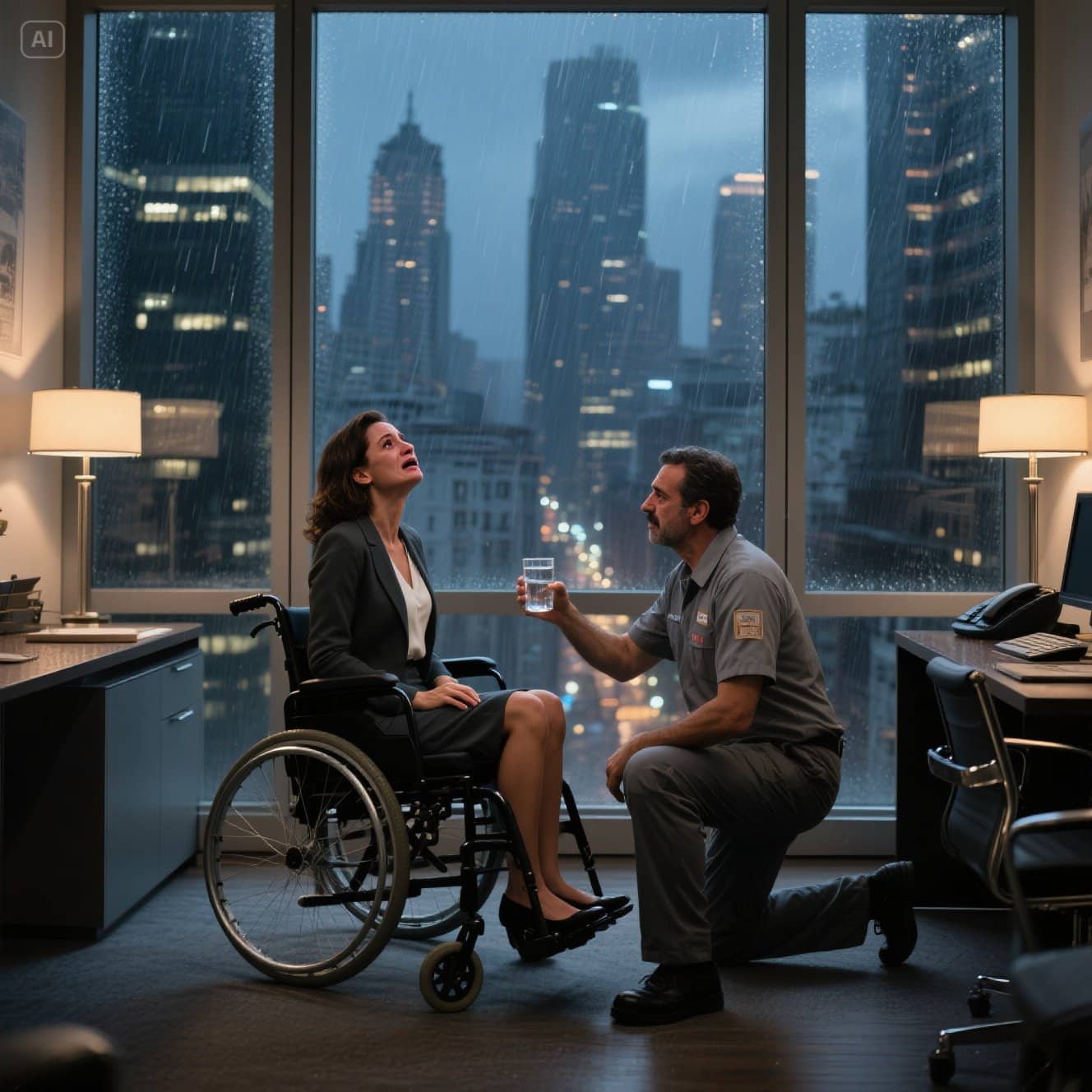 Sozinha, em uma cadeira de rodas e apavorada no meu escritório à meia-noite, o zelador se aproximou e sussurrou um segredo que despedaçou meu mundo em mil pedaços e o reconstruiu para sempre.