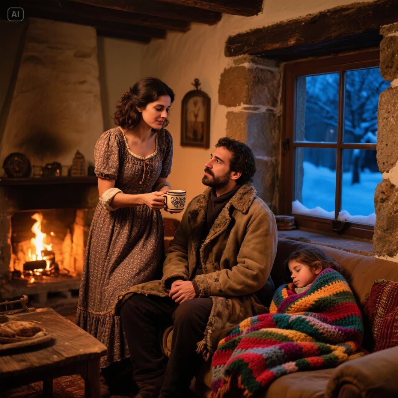 Lucía levantou-se e foi até o quarto dos fundos. Desta vez, não levou o atiçador de lareira consigo. Voltou com uma colcha grossa, uma das poucas coisas valiosas que possuía. Tinha sido tecida à mão por sua avó Carmen, com retalhos de tecidos de vestidos antigos e camisas de flanela. Cada pedaço contava uma história da família.
