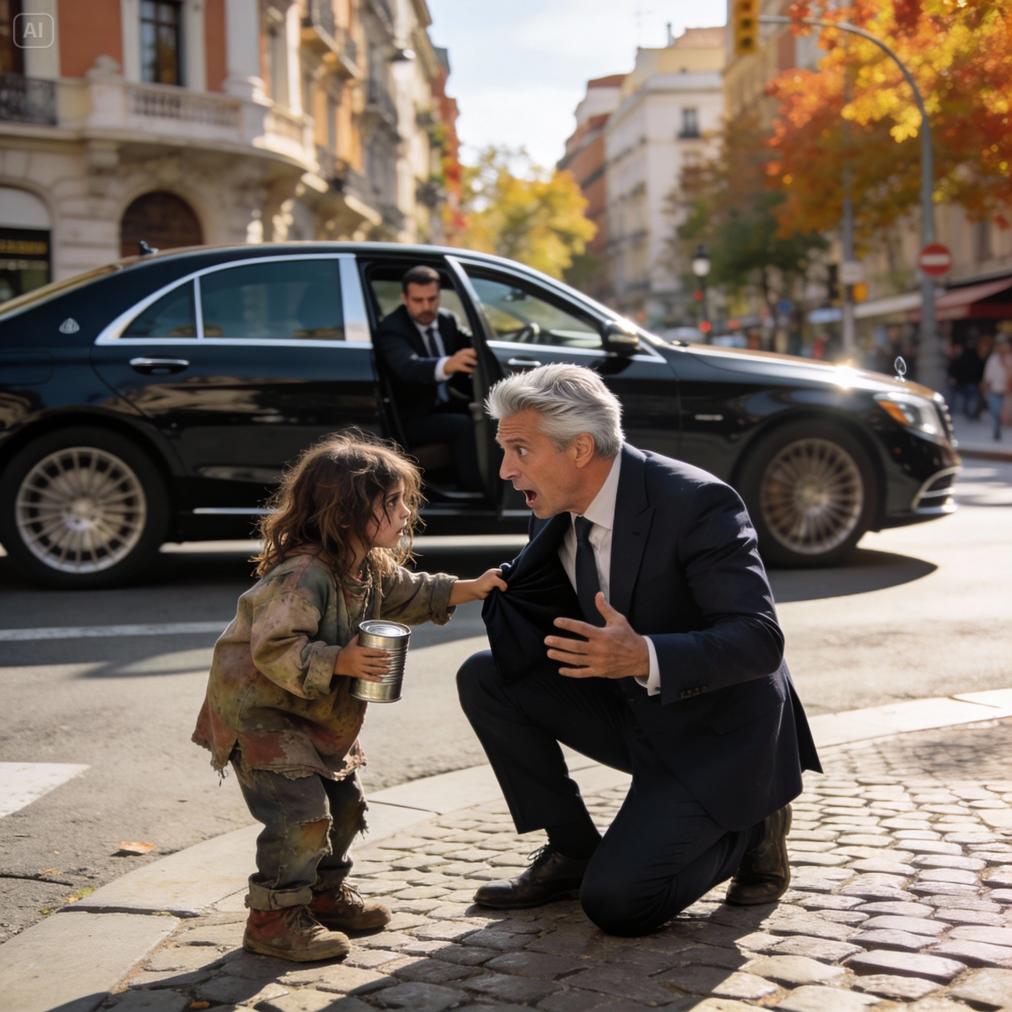 I looked down. The girl couldn’t have been more than eight or nine years old. She had tangled brown hair, skin tanned by the sun and the grime of Madrid’s streets, and bare feet that broke my heart just watching them touch the hot asphalt. But her eyes… her eyes looked at me with an intensity that disarmed me.