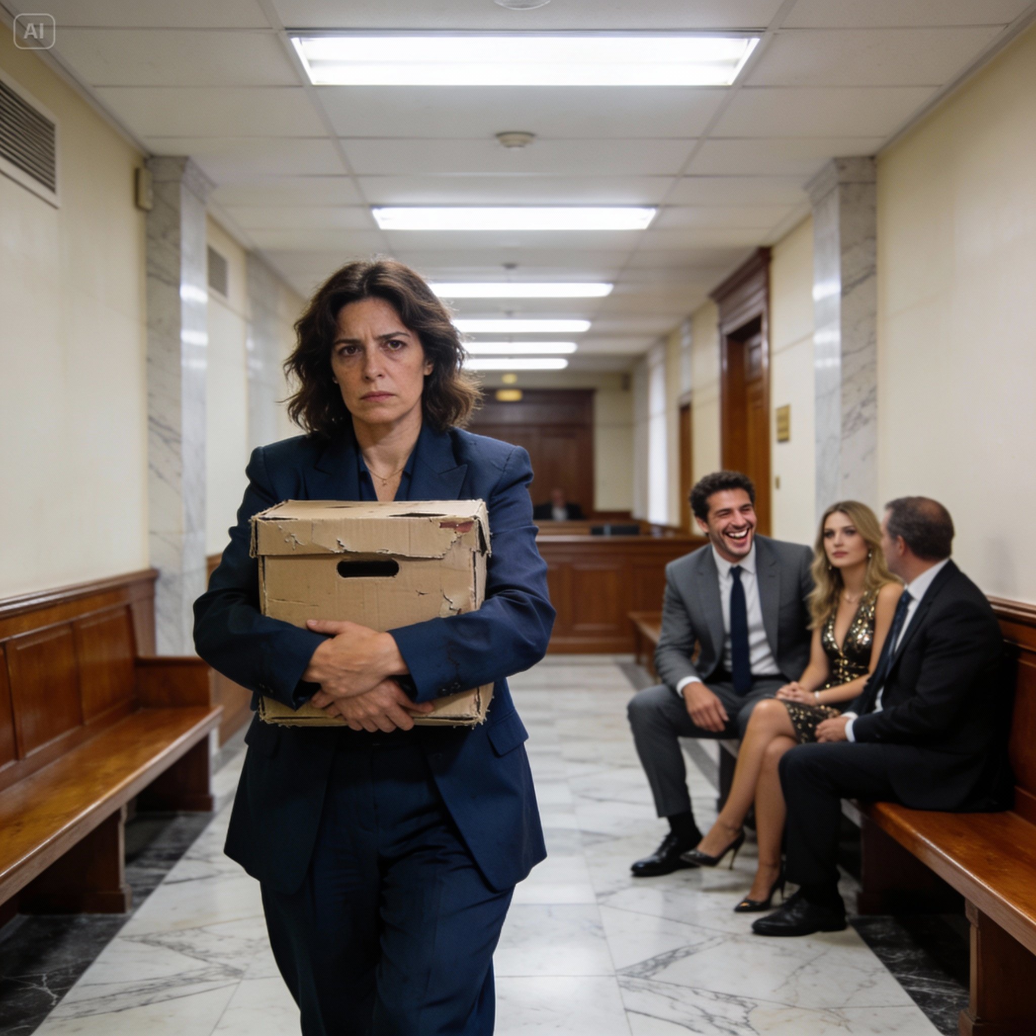 My name is Elena Pastor, and at 36, I sat alone on a polished hardwood bench outside the main courtroom of the Courts of First Instance in Madrid, waiting for the bailiff to call my name. My hands gripped the rough edges of a cardboard filing box tightly, the kind you buy in packs of three for ten euros at any neighborhood stationery store. It was worn at the corners and weighed a ton, straining my forearm muscles, but I absolutely refused to put it down. That box was my shield. It was my weapon. It was the only thing standing between me and total annihilation. And I clung to it as if it contained the beating heart of my life, which, in many ways, it did.