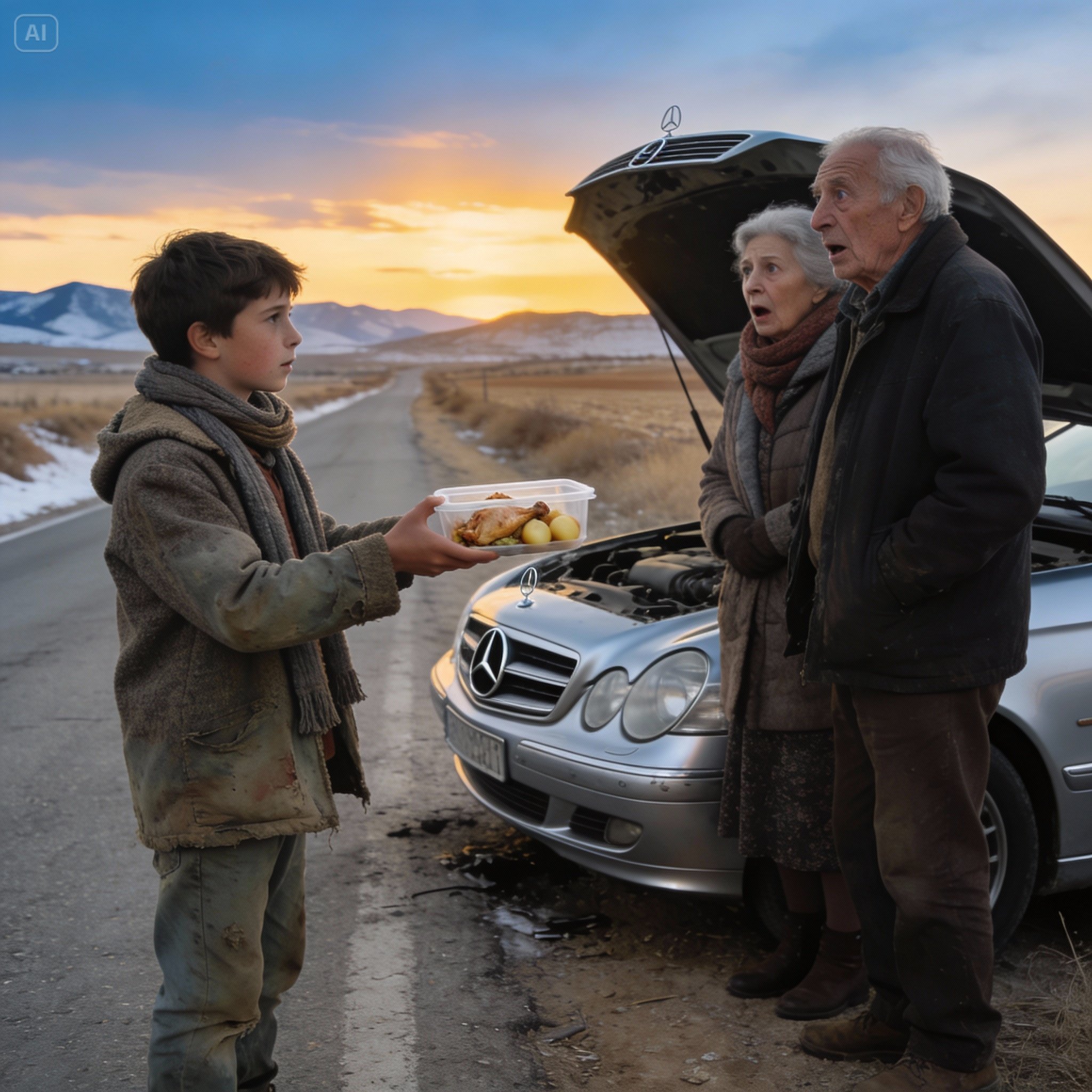 A kilometer away, near the old, abandoned gas station that served as a haven for graffiti and rust, a car was stopped. It wasn’t just any car. It was a silver sedan, a classic but immaculate model, perhaps an eighties Mercedes, one of those that look like luxury tanks. The hood was up, and a wisp of white smoke was escaping.