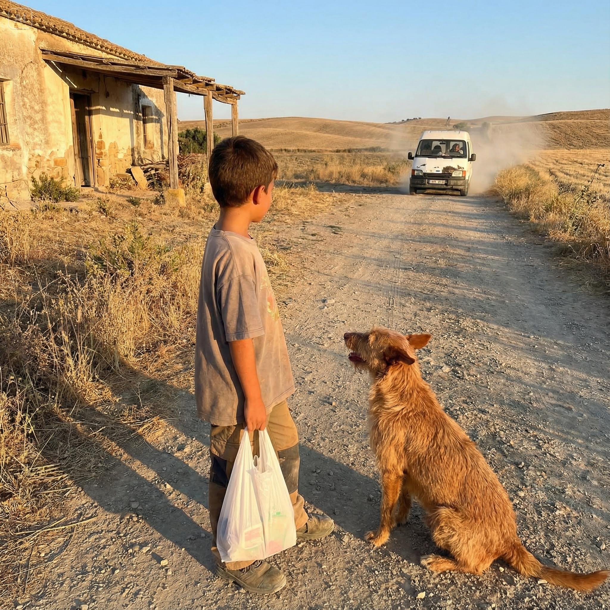 But Hector accelerated. The rear wheels spat out gravel and dust that blinded me, made me cough, and forced me to stop. I watched the red taillights recede among the olive trees, bouncing over the potholes, getting smaller and smaller, until they disappeared around a bend. The sound of the engine faded away, swallowed by the vastness of the countryside, until only the wind and the indifferent song of the cicadas remained.