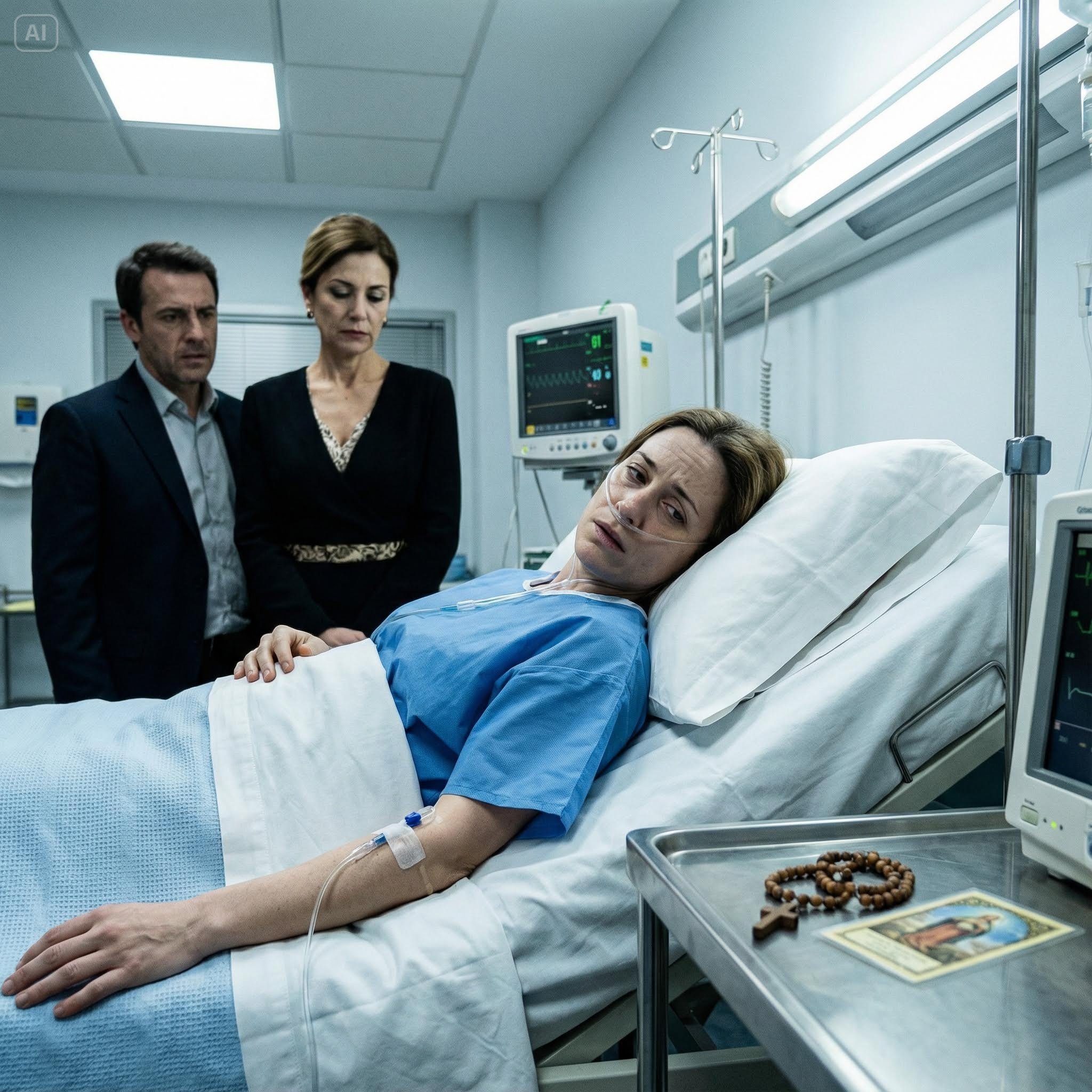 Laura stood beside him, arms crossed, wearing that expensive perfume I always envied, a carefully crafted smile that didn’t quite reach her eyes. She wasn’t supposed to be there. Carmen knew she’d registered earlier as a “family friend,” but hospitals see enough drama to recognize when someone’s not exactly welcome so close to a vulnerable patient.