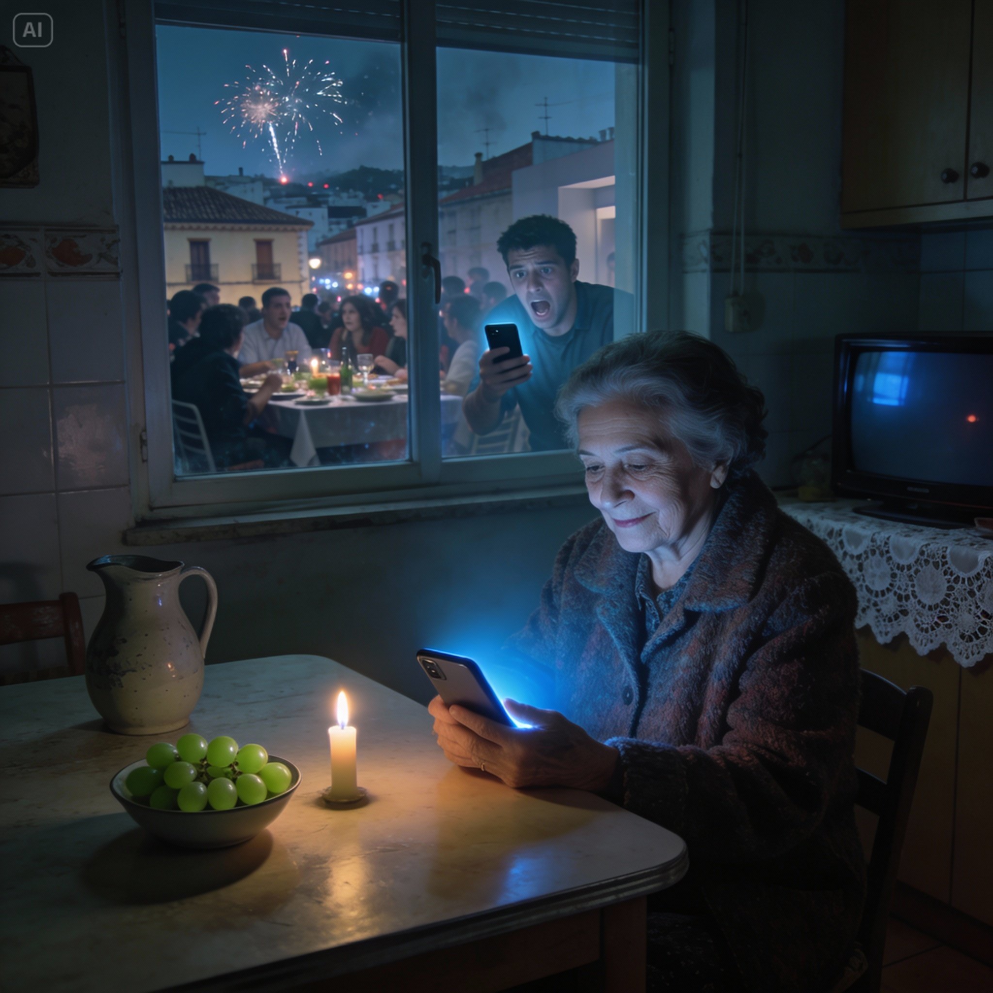 Midnight. The bells rang. One, two, three… I ate the grapes mechanically. No wishes, no toasts. Twelve chimes that marked the end of one year and the beginning of another in absolute solitude.