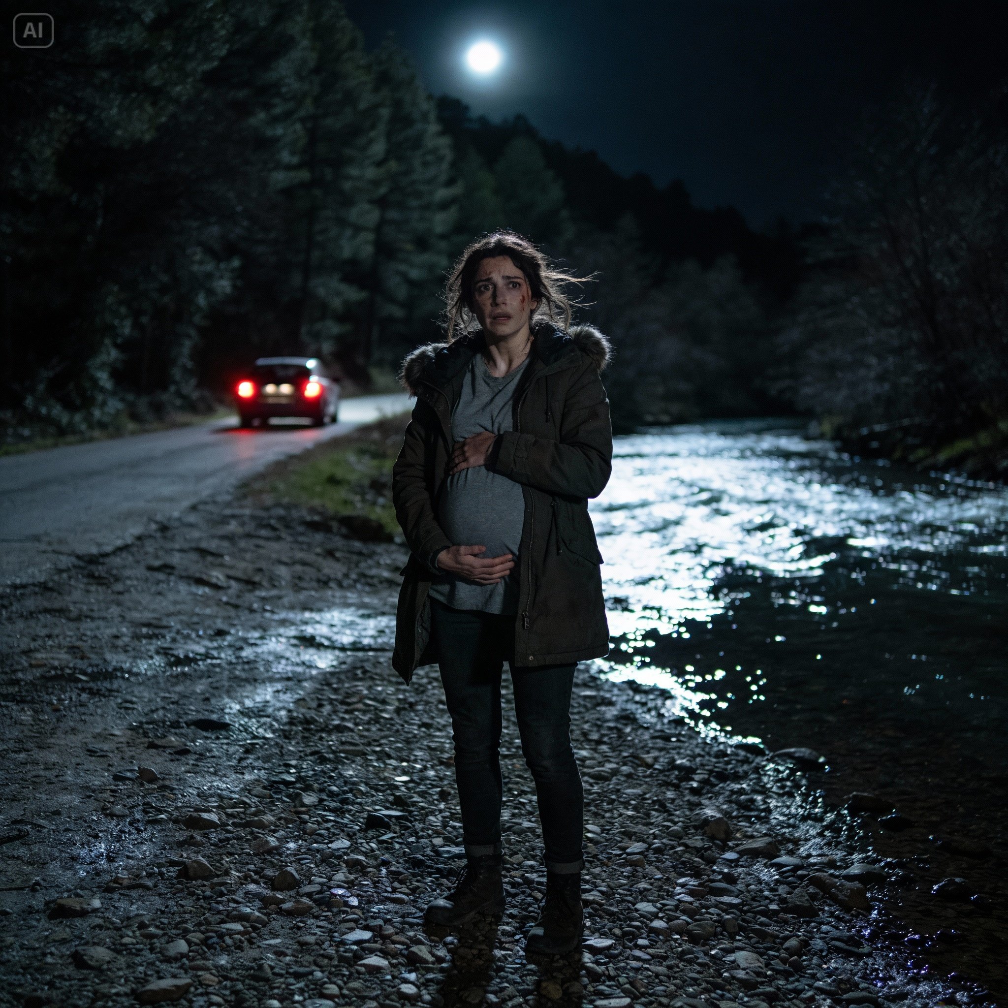 The sound of the engine faded as it picked up speed. I froze, watching the red glow of the taillights disappear into the distance. The wind tugged at my hair and clothes as the car vanished down the dark road. The lights disappeared around a bend, leaving nothing behind but silence and the relentless sound of the river.