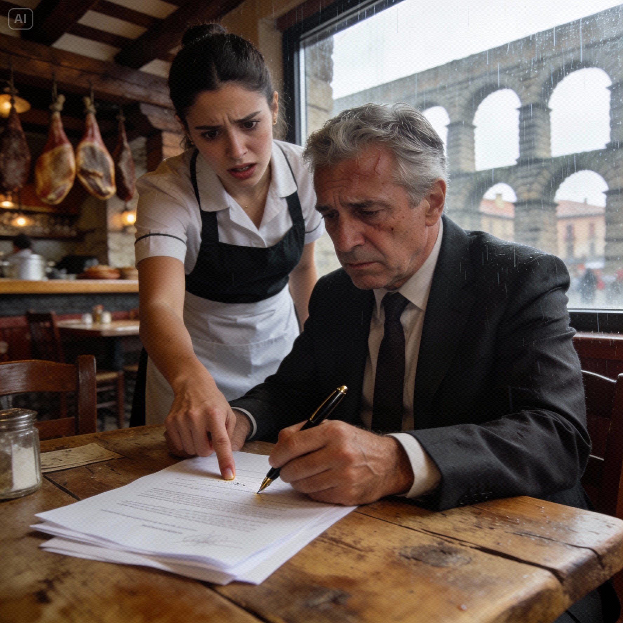 The May rain fell on the cobblestones of Segovia with a melancholic insistence, covering the city and its ancient aqueduct under a blanket of leaden gray. I parked my black Mercedes near the Plaza Mayor, feeling the engine shut off with a mechanical sigh that seemed to mimic the sigh of my own soul. I sat there for a few moments, my hands gripping the leather steering wheel, watching the raindrops distort reality on the other side of the windshield.