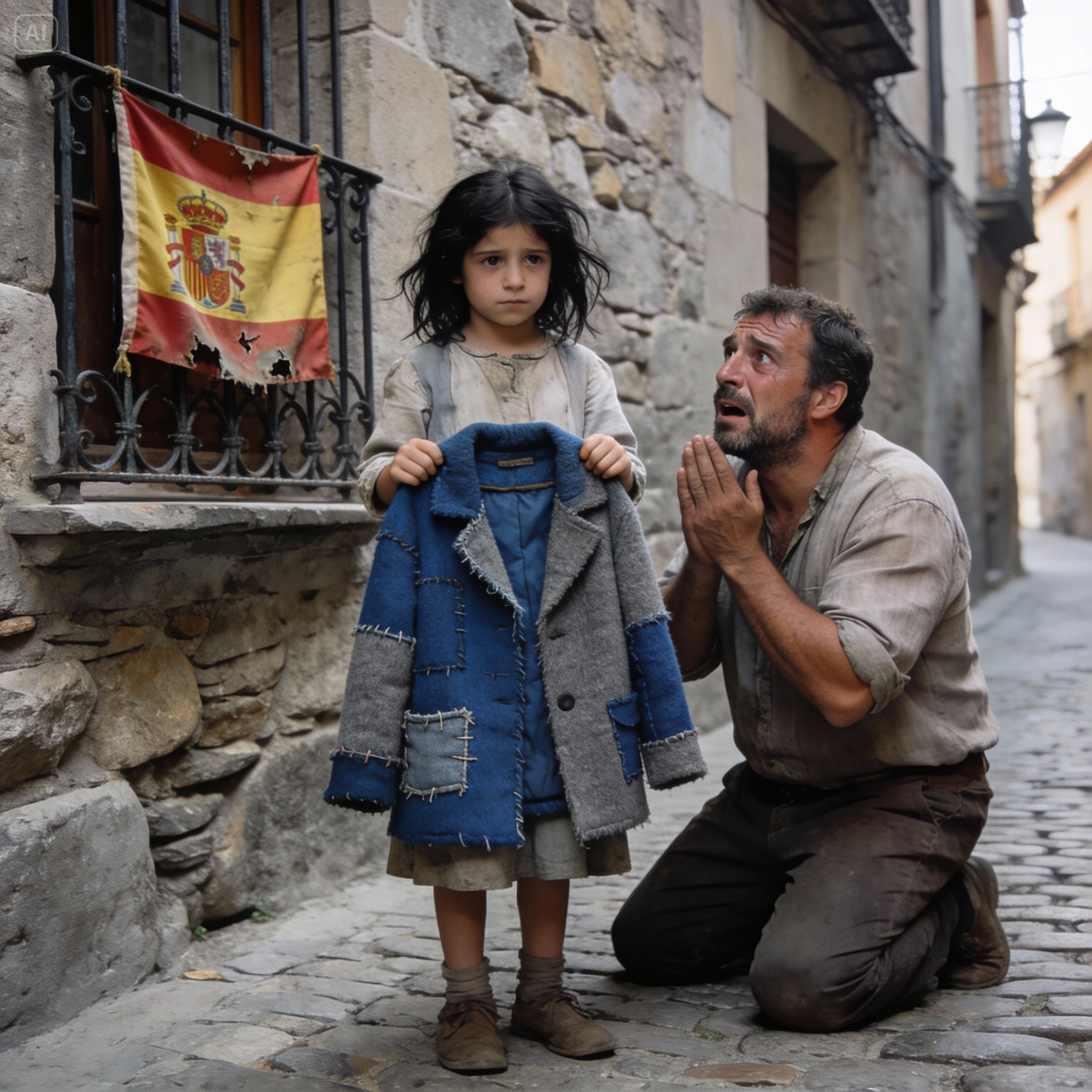 I stopped dead in my tracks. My protective instinct, the one my lineage carries in its blood, kicked in instantly. I turned and saw her. She was a tiny girl, about seven or eight years old, sitting on a wet piece of cardboard in the doorway of an old building. Her eyes were large and dark, filled with a dignity that made me feel small. In her small hands, she held a blue and gray wool coat, mended with a patience that only the purest love can inspire.