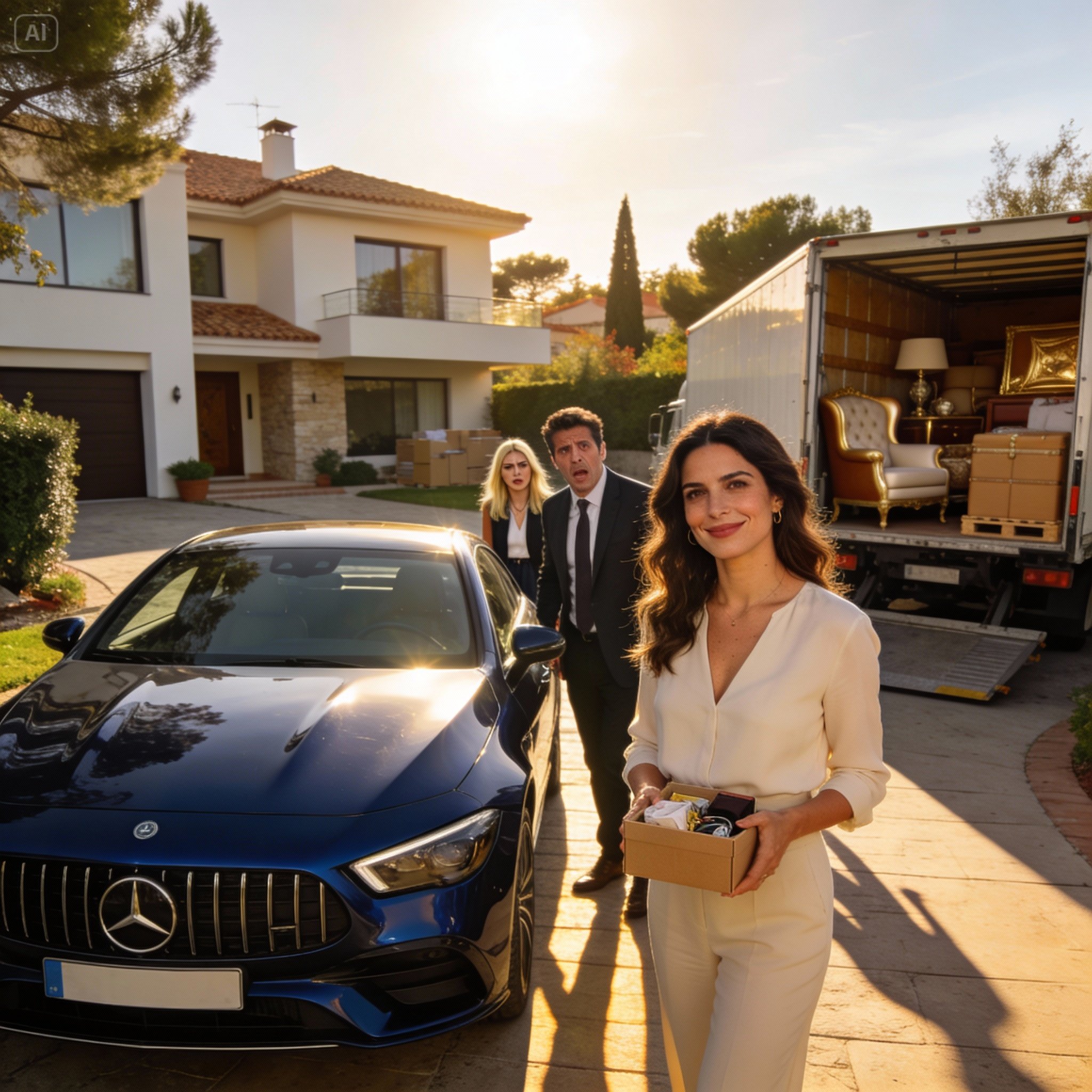 I dodged him with an elegant step. “Goodbye, Álvaro.” I left the house without looking back. I felt the warmth of the sun on my face and the fresh air filling my lungs. Behind me, I could hear Álvaro muttering things to Carla, trying to make sense of what had just happened. The movers had already loaded half the furniture onto the truck. Some nosy neighbors, Mrs. García and Mr. Méndez, were in their gardens watering plants that didn’t need water, watching the spectacle. Some waved at me, with pitying looks, probably thinking that “poor Valeria” was being evicted with nothing.