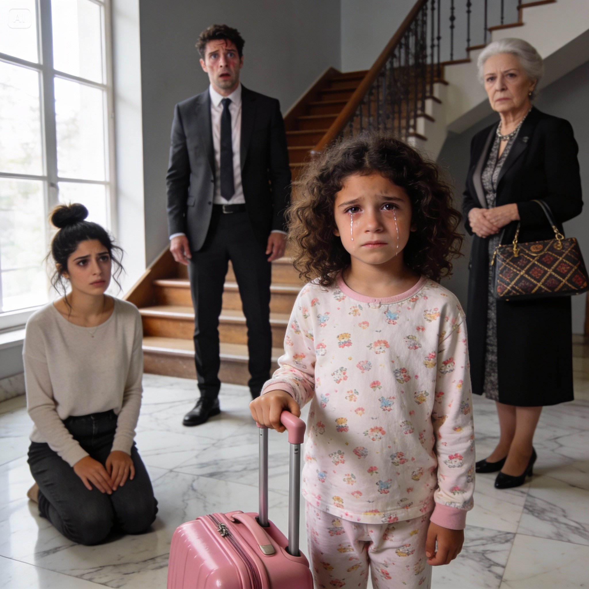 Emilia, my six-year-old daughter, had a more stubborn heart than any of the adults in that room. I saw her there, tiny in the vastness of the entrance, gripping the handle of her small pink suitcase with both hands. Her knuckles were white from the force she exerted. Her cheeks were wet, and her chin trembled in a way that broke my heart, but she didn’t back down an inch. She stood firm on the floor with the dignity of a soldier defending her last trench.